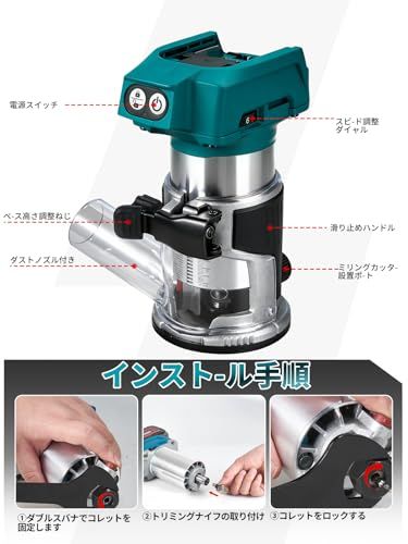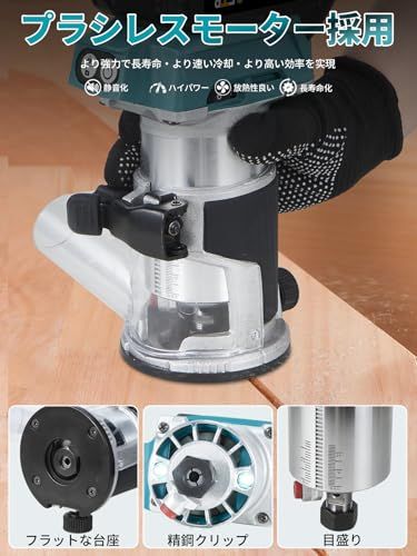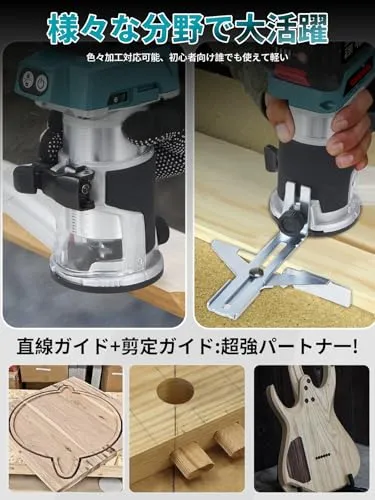 【コードレスで自由自在&フルセットで到着後すぐ作業】充電式18Vバッテリー2と急速充電器が付属。屋外でも電源不要で作業でき、DIYから現場木工まで幅広く活躍。軽量で扱いやすく、初心者でも簡単に操作できます。 セット内容: 本体、集塵アダプター、アルミベース、6.35mm(本体装着)コレット、日本語説明書。