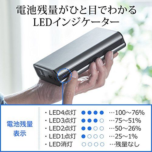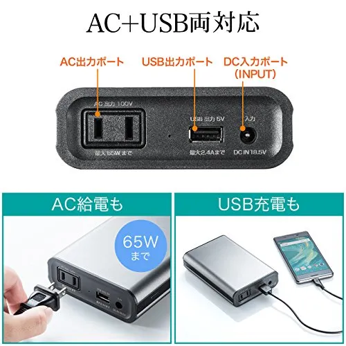 ◆サンワダイレクト ポータブル電源 AC65W出力 11400mAh ノートPC充電 緊急・災害時対策 600g 機内持込 700-BTL025N