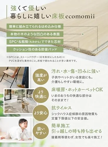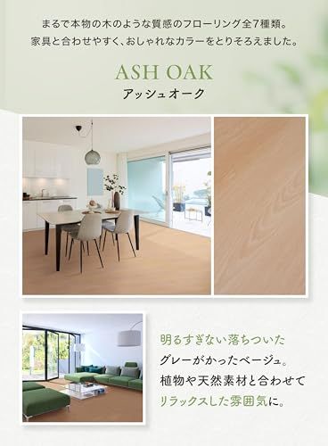 ◆床材 はめ込みフローリング 接着剤不要 (アッシュオーク, 1ケース) 幅152mm × 長辺914mm × 厚さ5mm 防水加工 賃貸 原状回復