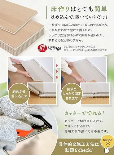 上貼り(既存のフローリング対応)、真貼り(コンクリート対応)、捨て貼り(合板24下地対応)