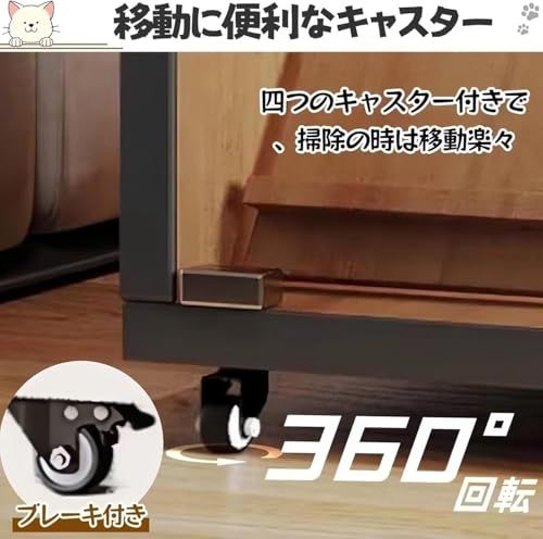 【キャスター付きで掃除や移動がスムーズ】底部には360回転キャスターを装備しており、掃除の際やちょっとした位置変更でも簡単に動かせます。ロック機能付きで使用時はしっかり固定でき、安定性も確保。一人でも扱いやすいです。
