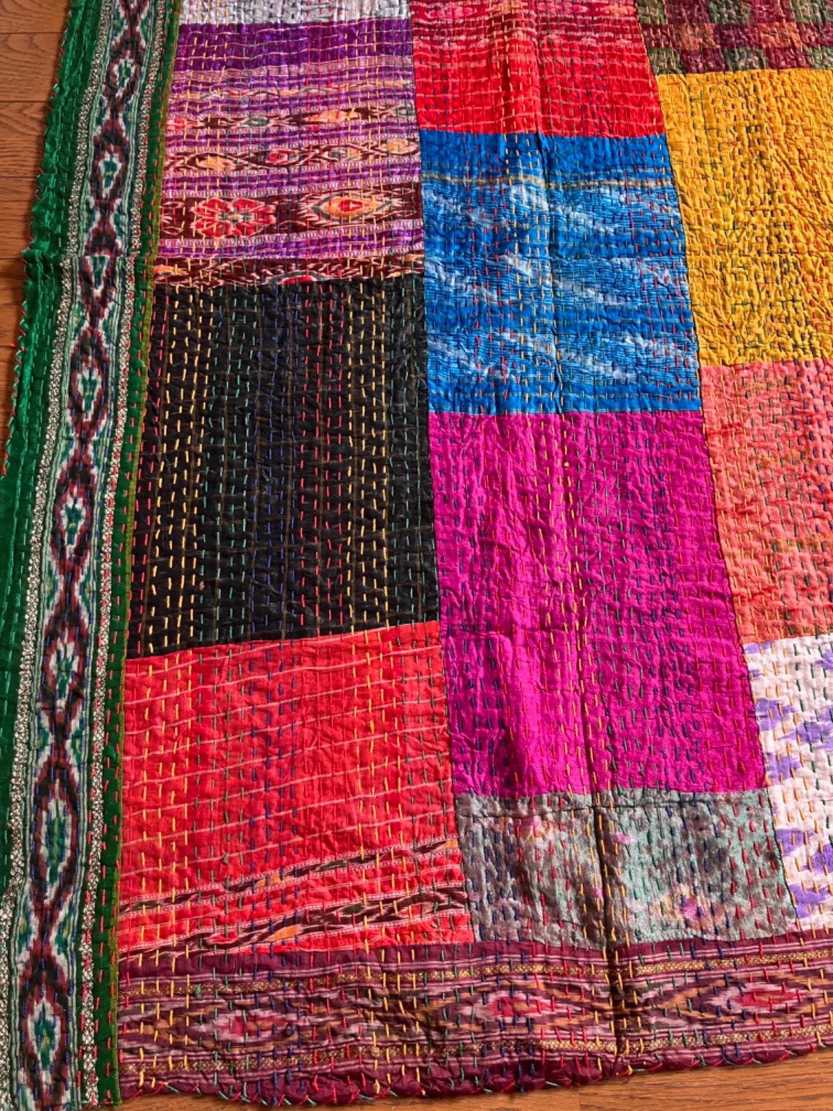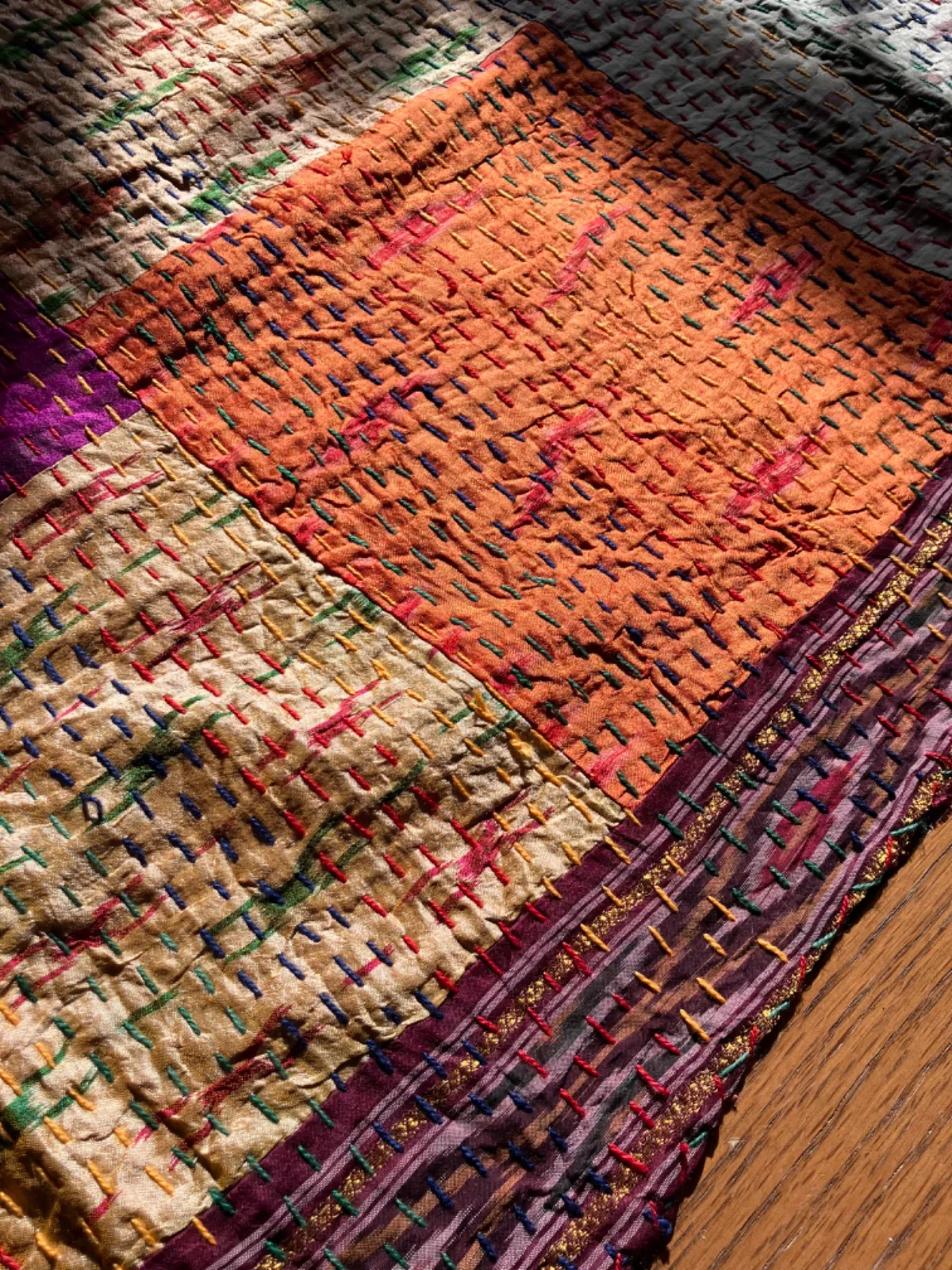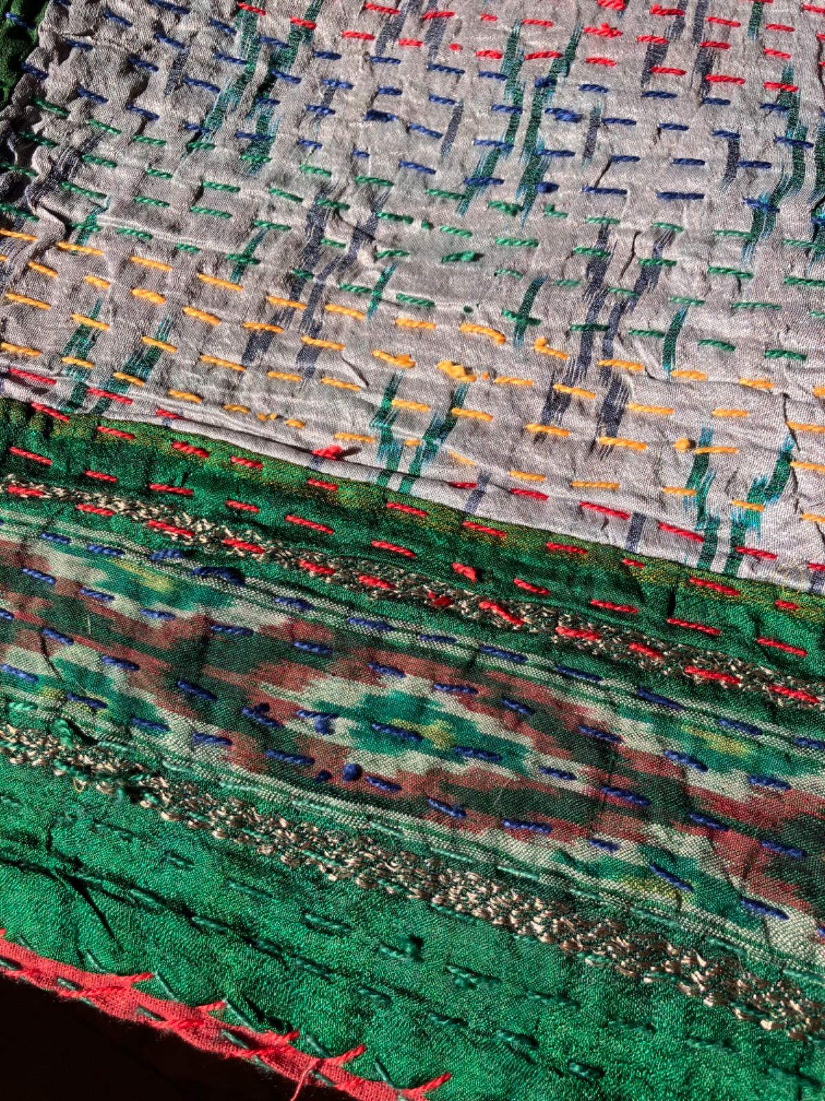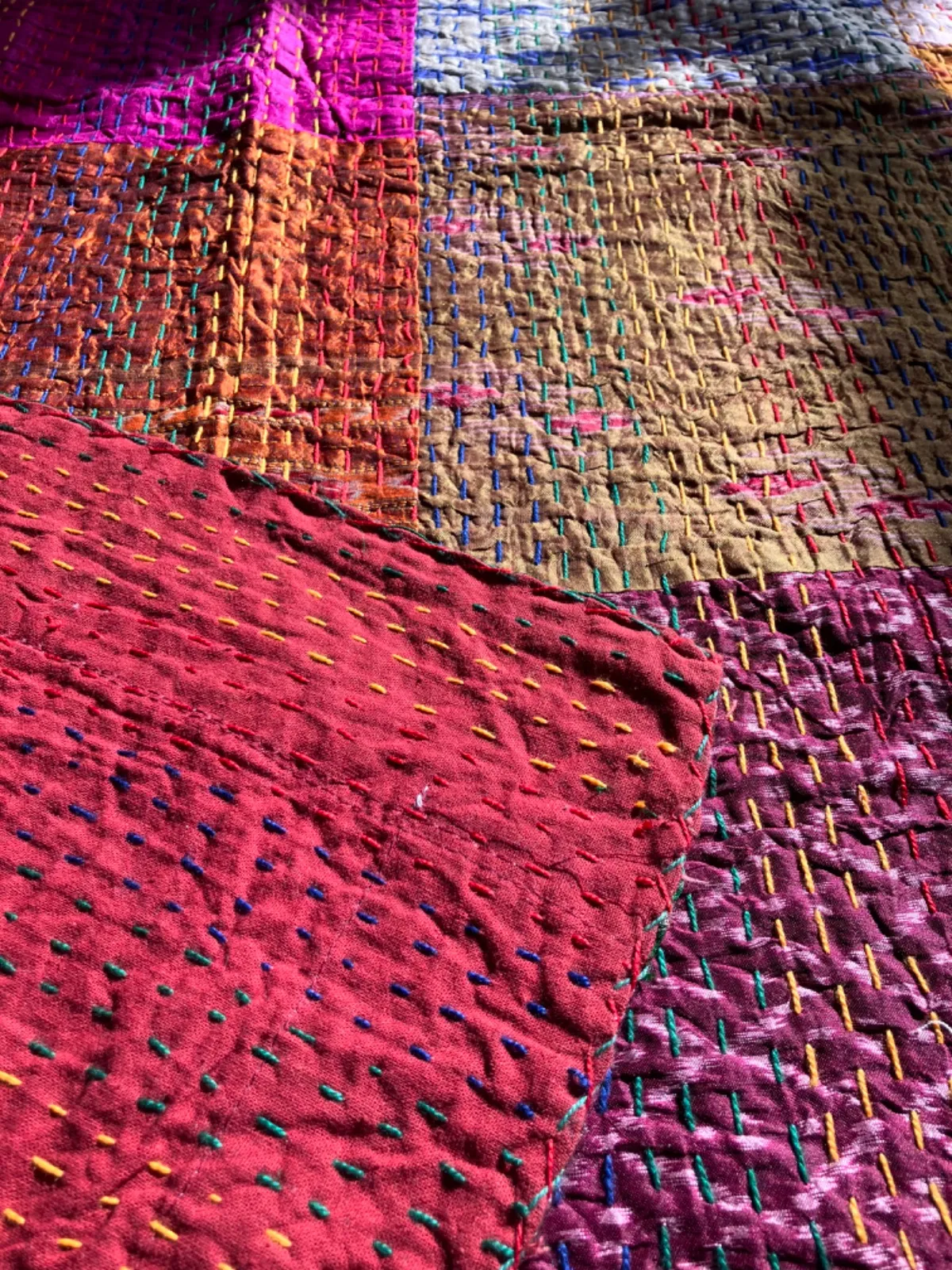 インド・パキスタン・バングラデシュ周辺で長い歴史を持つ、古くなったサリーや腰布を再利用した伝統的なパッチワーク刺し子布です✴︎✴︎