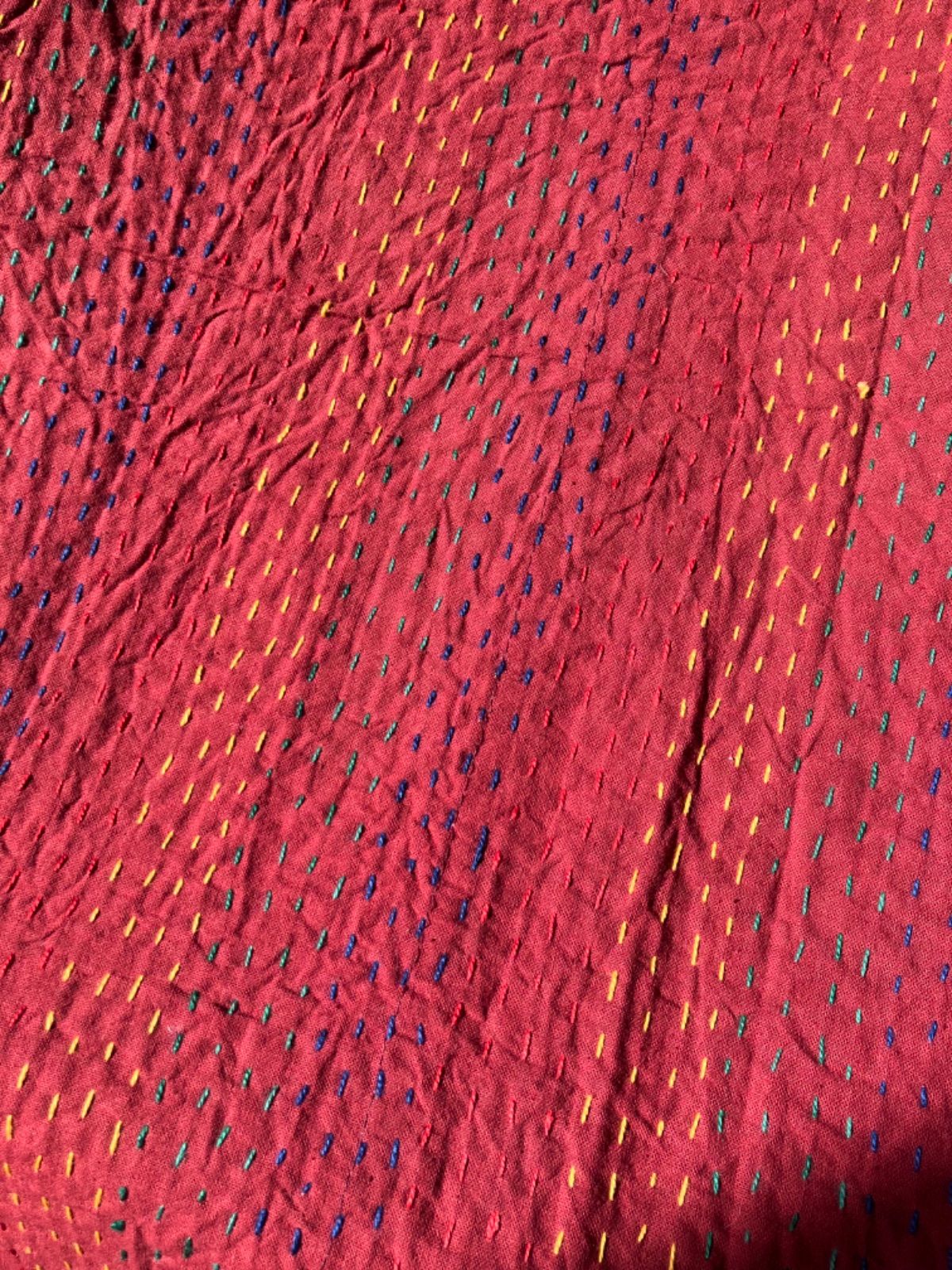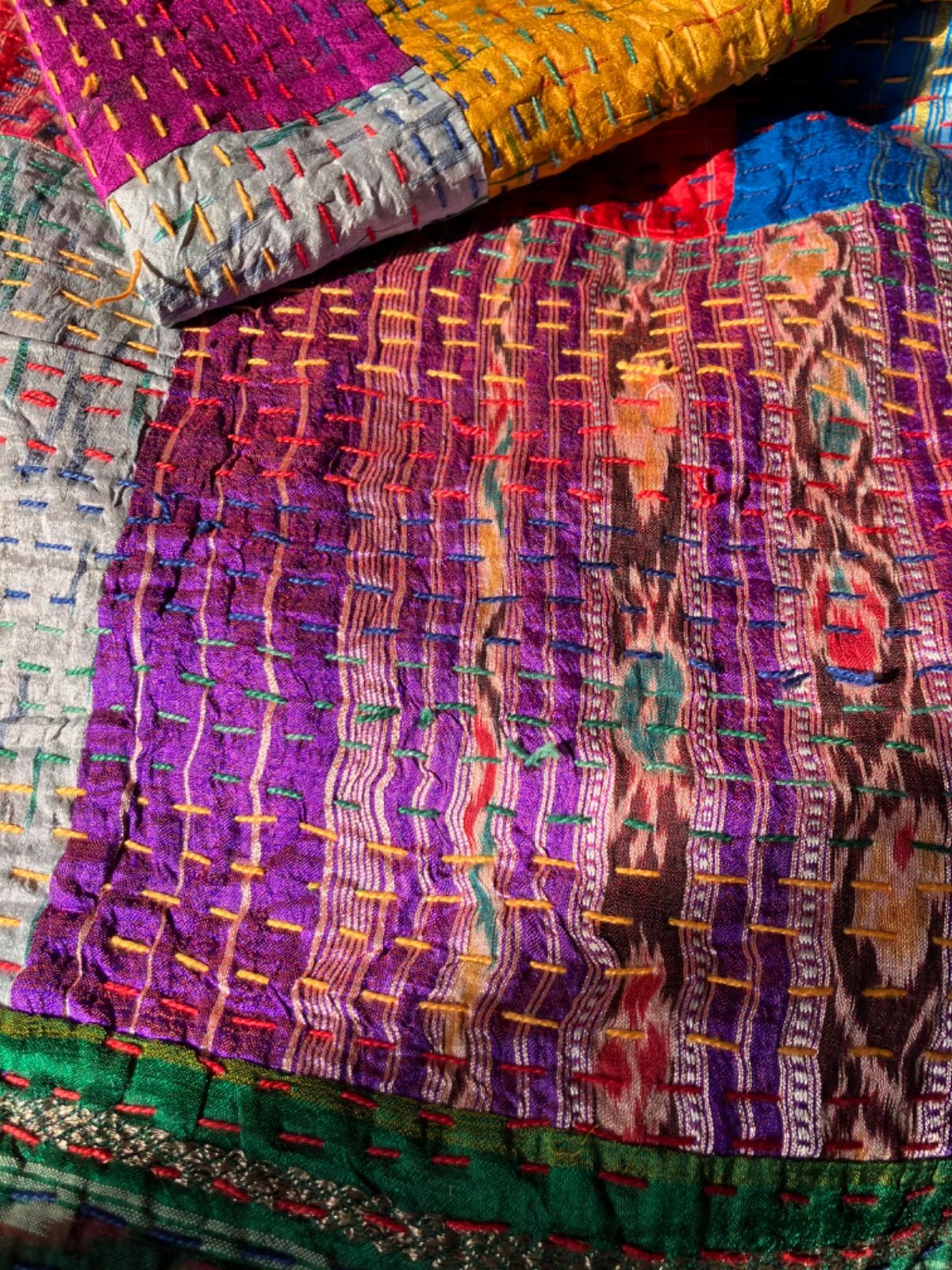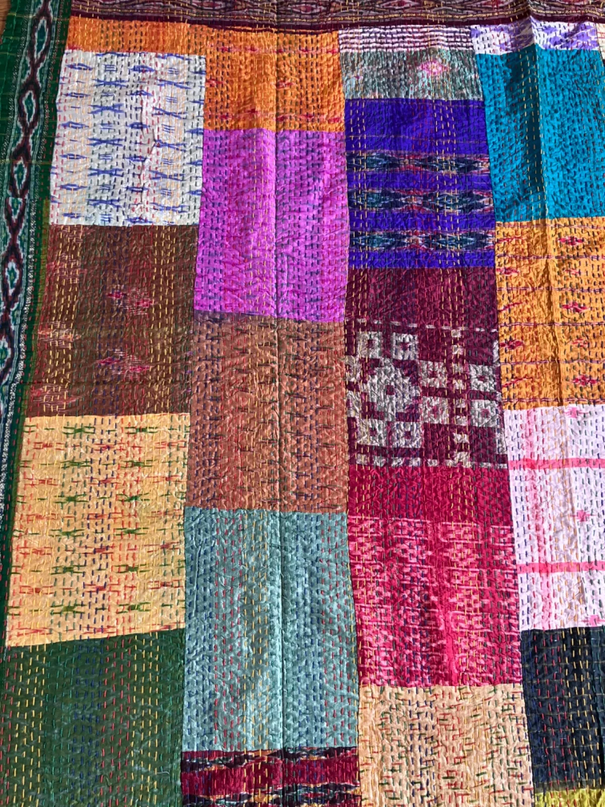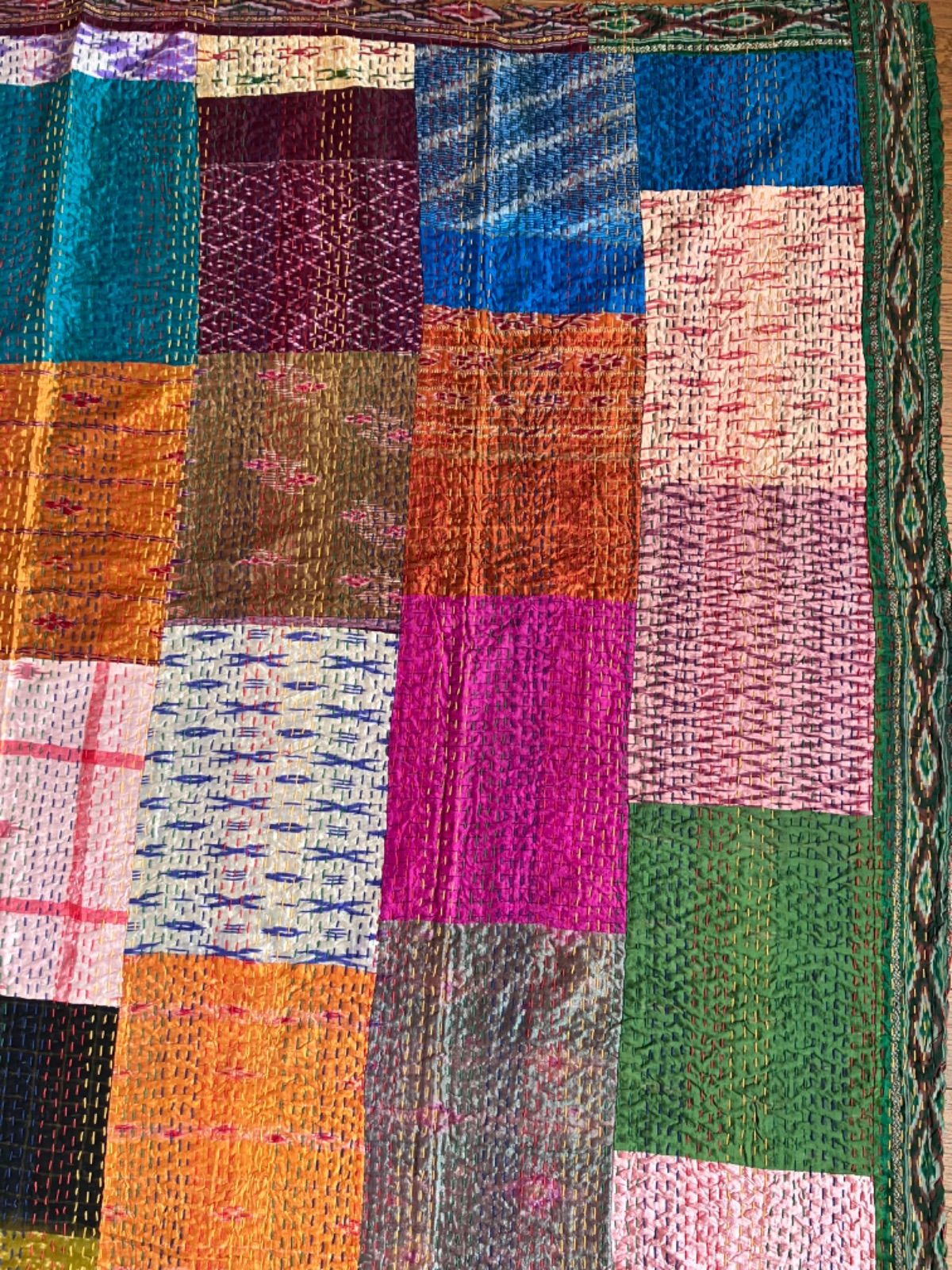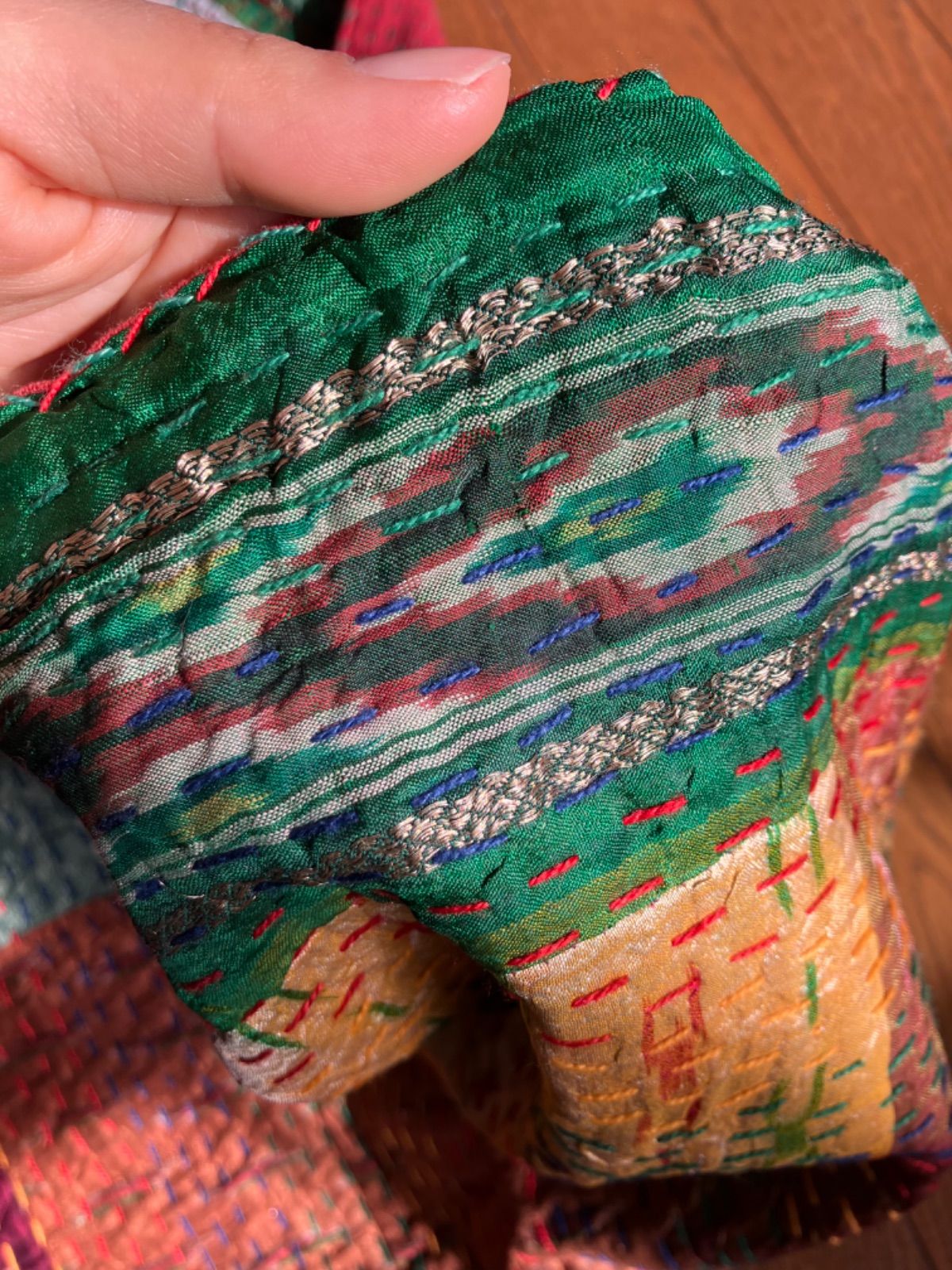 インド・パキスタン・バングラデシュ周辺で長い歴史を持つ、古くなったサリーや腰布を再利用した伝統的なパッチワーク刺し子布です✴︎✴︎