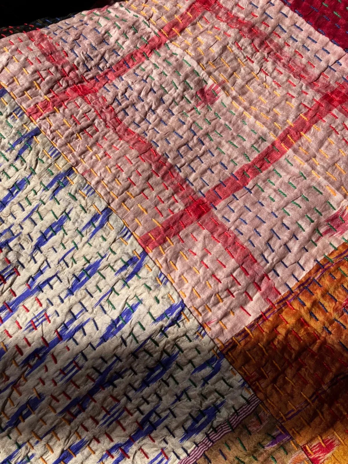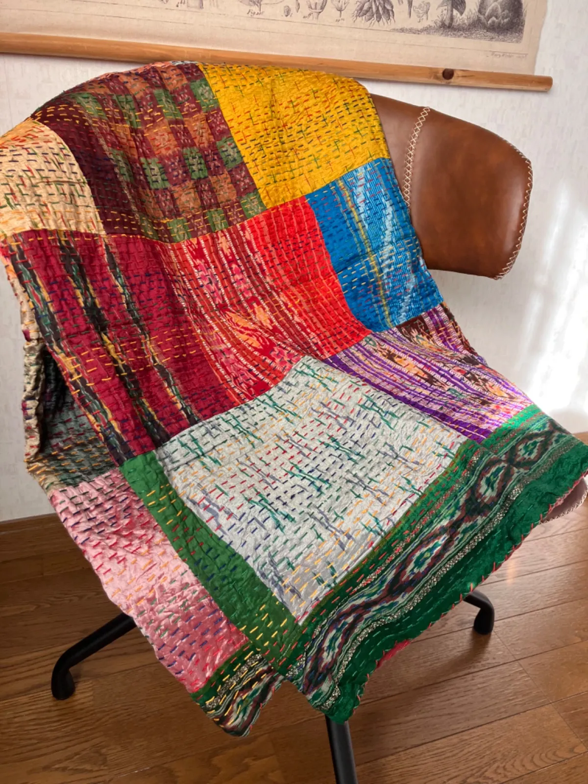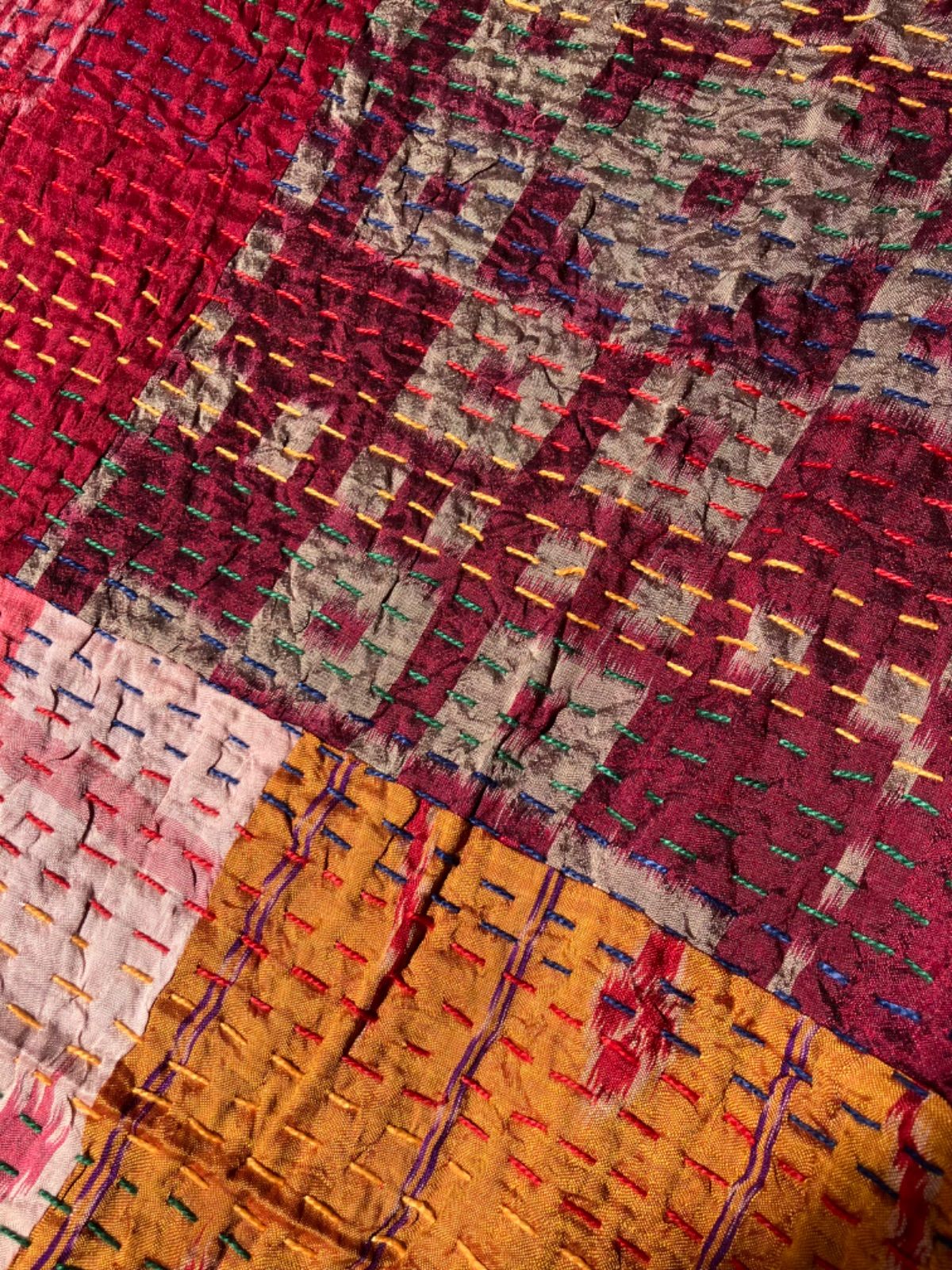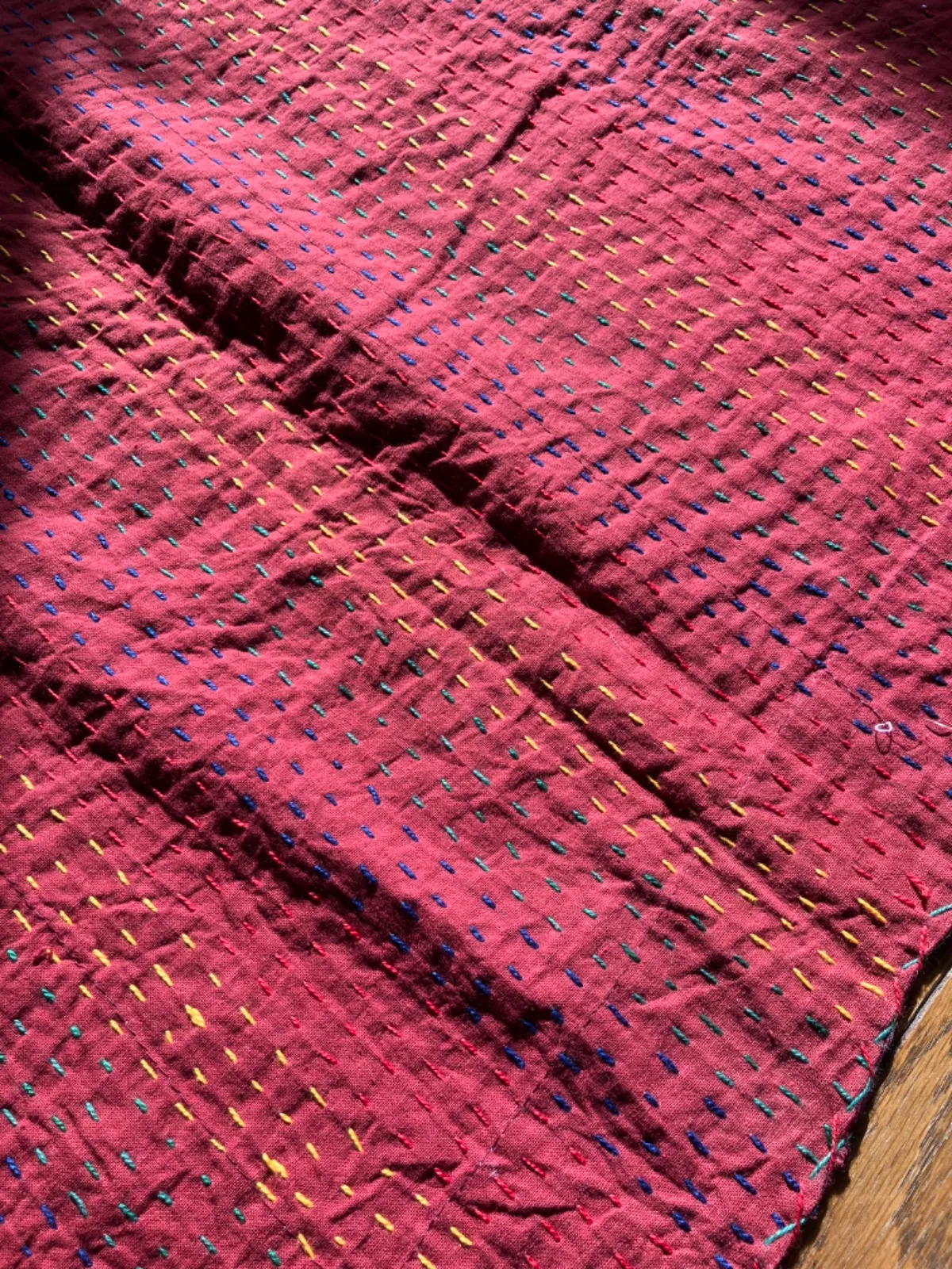 インド・パキスタン・バングラデシュ周辺で長い歴史を持つ、古くなったサリーや腰布を再利用した伝統的なパッチワーク刺し子布です✴︎✴︎