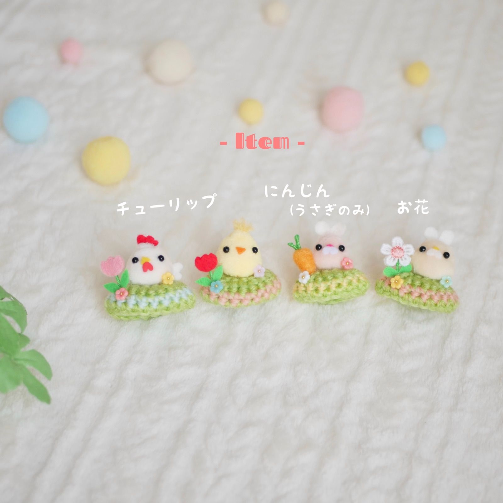 【アイテム】 🌼お花 ・ピンク ・フラミンゴ ・イエロー ・ブルー ・パープル 🌷チューリップ ・赤色 ・ピンク ・黄色 🥕うさぎのみ にんじん も選択可能