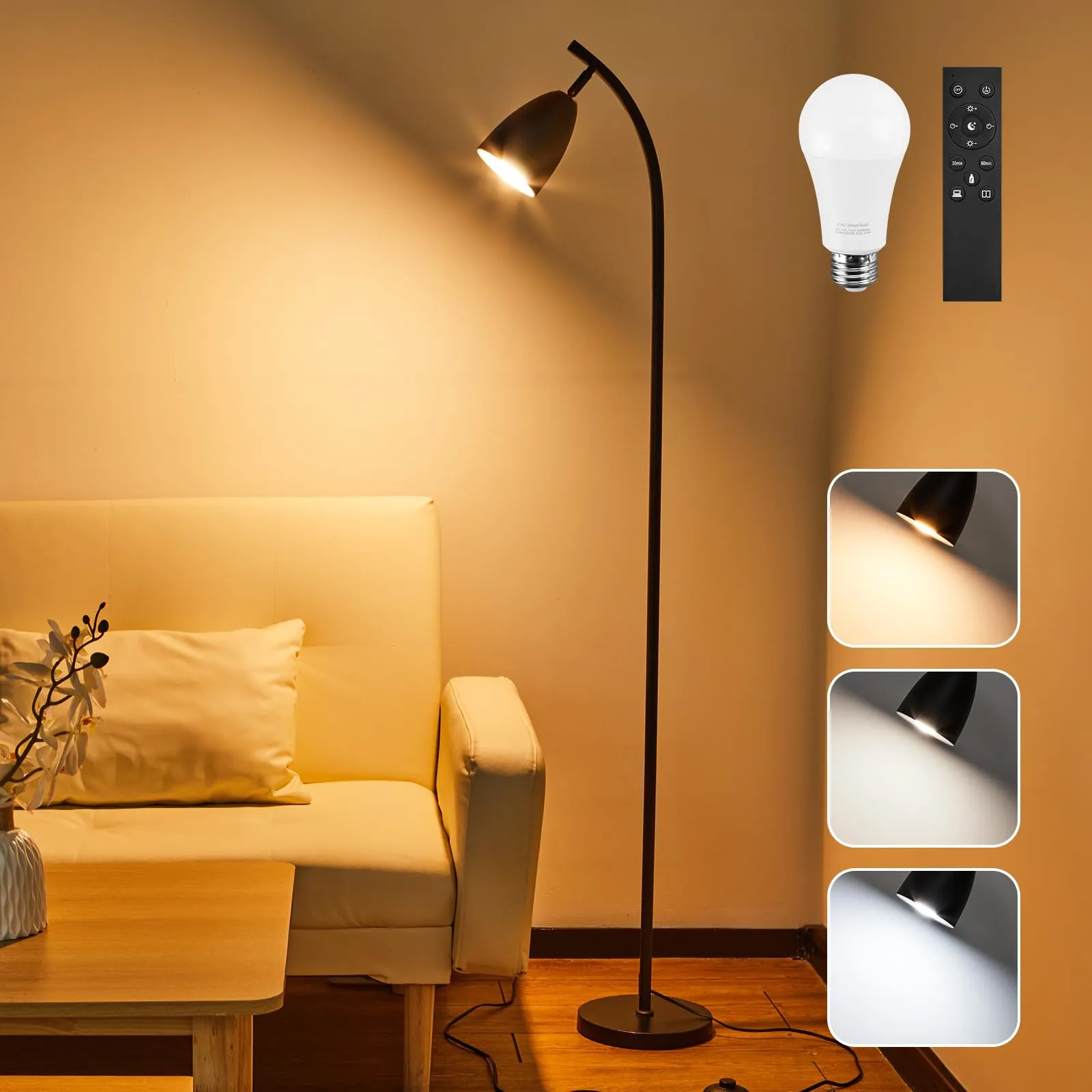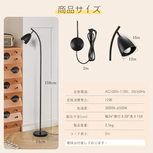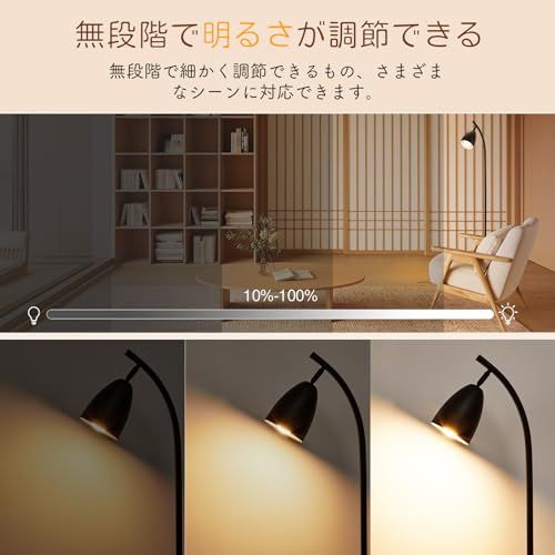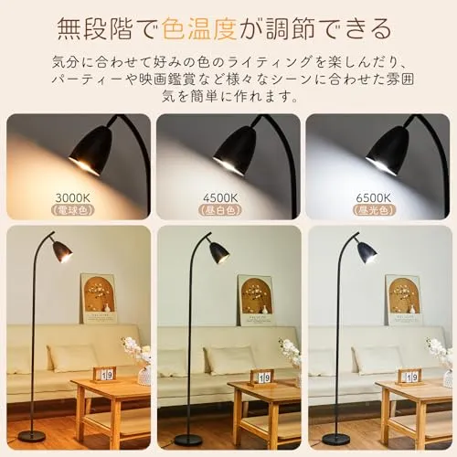 【無段階調光・調色可能&12WLED電球付き】無段階の調光調色と組み合わせて、色温度を電球色から昼光色まで無段階に調整できます。好きな色をおしゃれに作成することができるフロアスタンドランプ。明るさ調整が10100%までの無段階調光の親切設計なフロアライトとなります。シーンに応じて好みの明るさや色温度で光を当てられます。