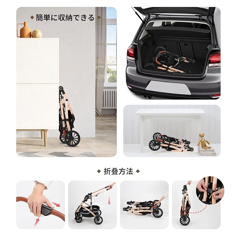 【もっと便利】ワンボタンでボタンを押せば、どこでも簡単に折り畳んで収納できます。コンパクトだから、玄関や車のトランクなどの狭い空間にも保管できます。ドリンクホルダー付き、犬用ベビーカー下のカゴに荷物も入りできます。マットレスを取り外せて丸洗いできますので、抜け毛やにおいが残りがちなキャリーをいつも清潔に保てます。