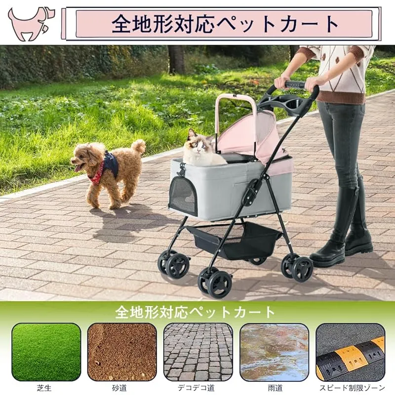 LPOTIUS ペットカート 折りたたみ 2Way 分離型 軽量 多機能 小型犬 中型犬 猫犬兼用 ペットキャリー 4輪360°回転 取り外し可能 ペットバギー 組み立て簡単 お出かけ 介護用 旅行 犬用 バギー カート 耐荷重15KG ペット用ベビーカー 0