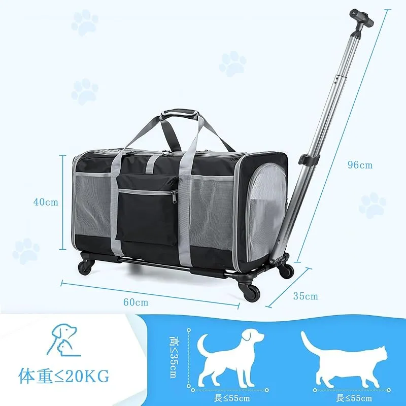 猫 2 匹 キャリー ペットキャリー キャスター付き 小型 中型犬 キャリー カート ペットトロリーバッグ ペットキャリーケース 折り畳み 【20kg/55cm】までサポート 大容量 通気性 旅行/通院/交通機関/災害避難用 1