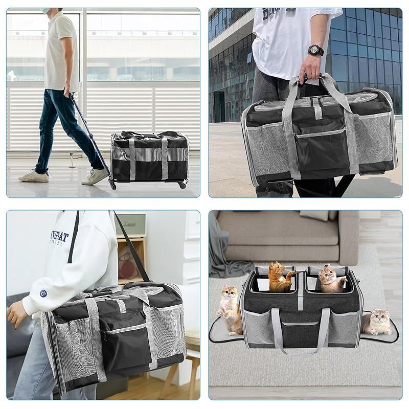 【2025年新登場】猫 2 匹 キャリー ペットキャリー キャスター付き 小型 中型犬 キャリー カート ペットトロリーバッグ ペットキャリーケース 折り畳み