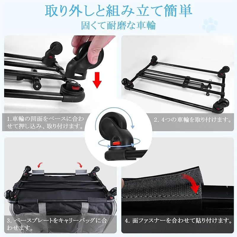 【使いやすさ】ローラー付き設計で大型猫を運ぶ際の肩や手の負担を軽減。使用後は折り畳み可能です。手提げ/トローリー式移動/車載のいずれにも対応し、簡単に組み立てられるため、外出先での利用に最適です。