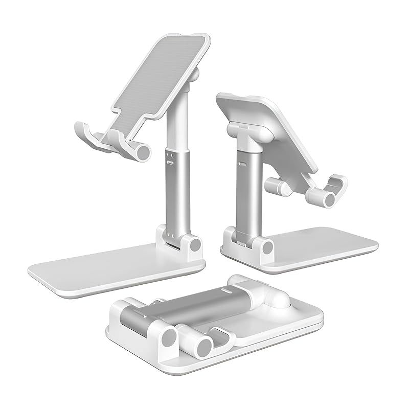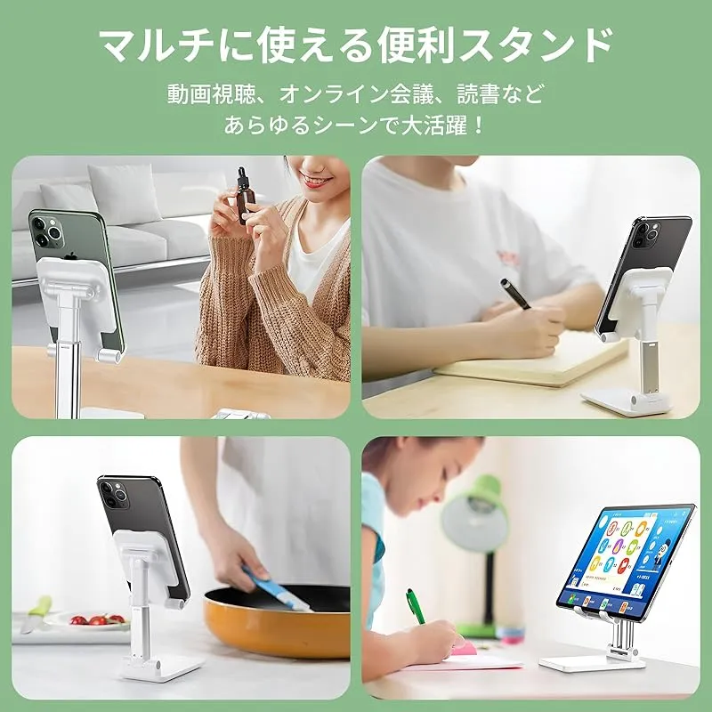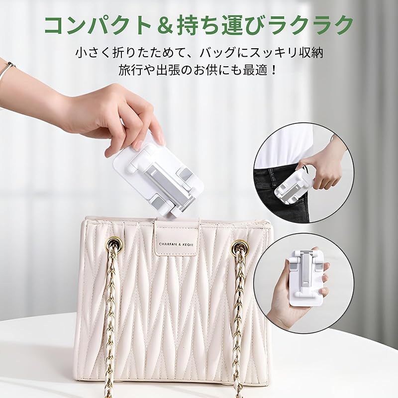 スマホスタンド 折り畳み 高さ調整可 コンパクト スマホ立て 携帯スタンド 卓上 スマホスタンド 角度調整可能 持ち運び 滑り止め付き ブラック ホワイト 折りたたみ式スマートフォンスタンド デスクトップホルダー (ホワイト) 1