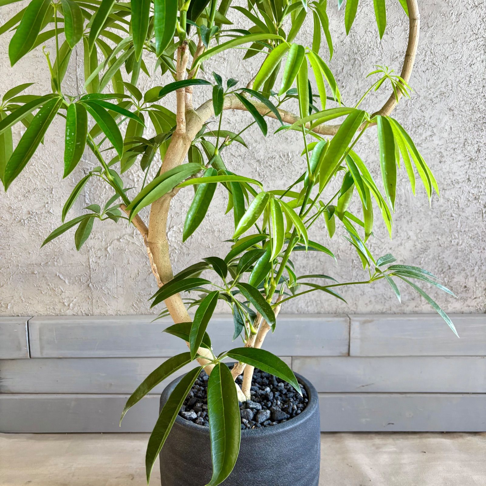 【植物について】 シェフレラ アンガスティフォリアは細長い繊細な葉が特徴的な植物です。シェフレラ・アルボリコラよりも、葉が細長いためスタイリッシュな印象を与えます。柔らかな雰囲気がシンプルな空間によく合います。比較的丈夫な為、初心者の方にもおすすめです。