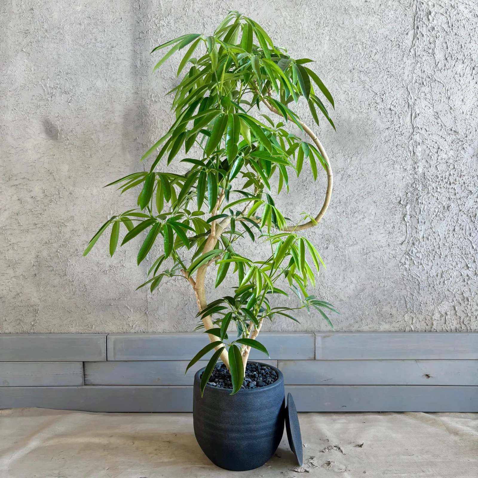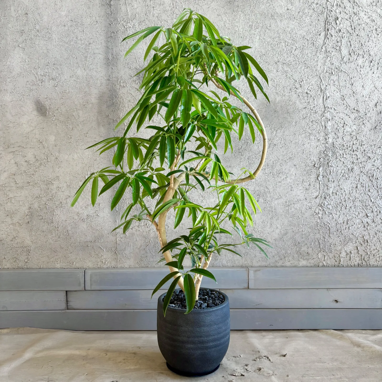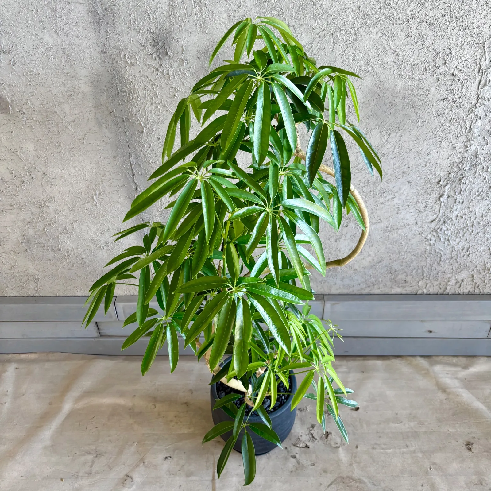 美形 幹太 曲がり仕立て シェフレラ アンガスティフォリア 9号 テラコッタ鉢植え アンティーク風 受け皿付き