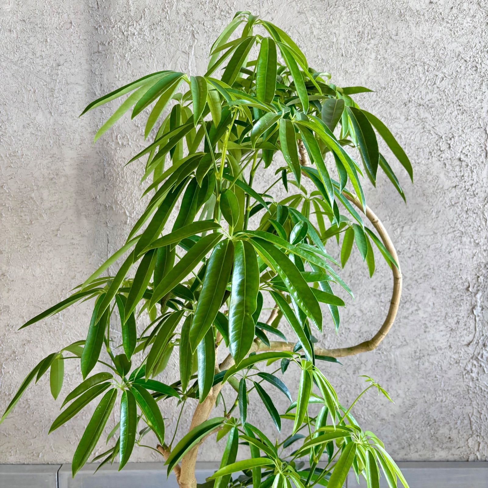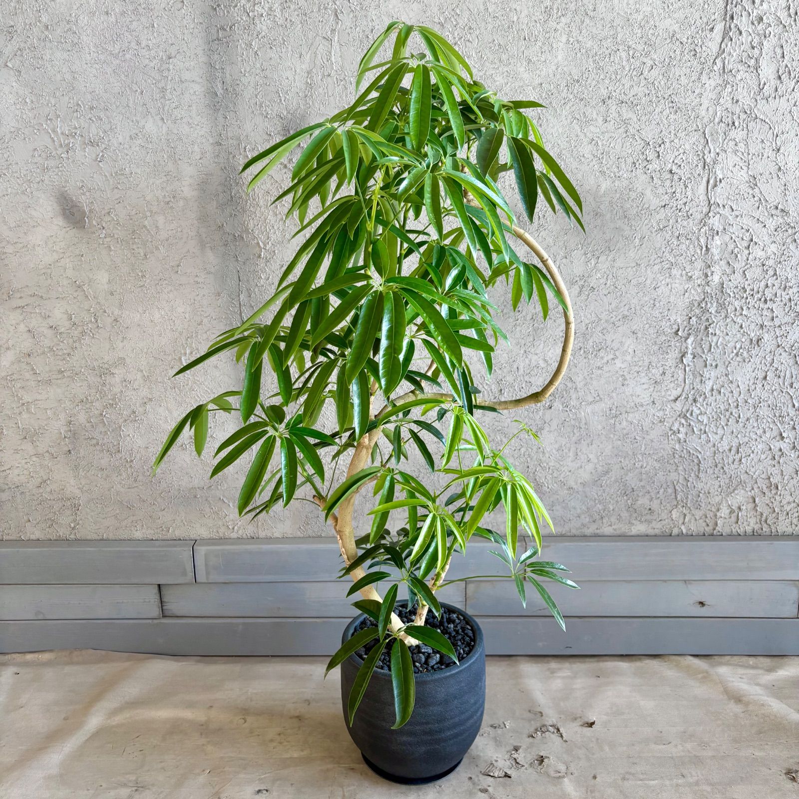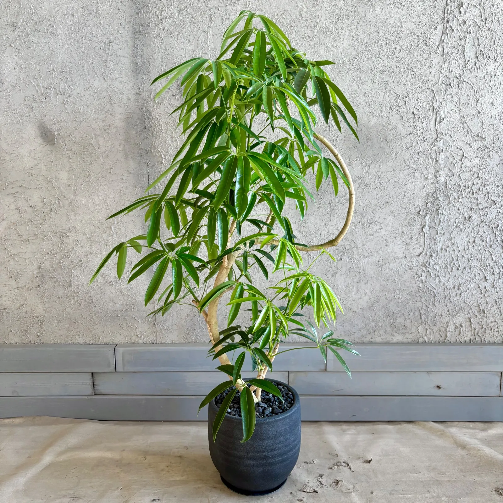 美形 幹太 曲がり仕立て シェフレラ アンガスティフォリア 9号 テラコッタ鉢植え アンティーク風 受け皿付き