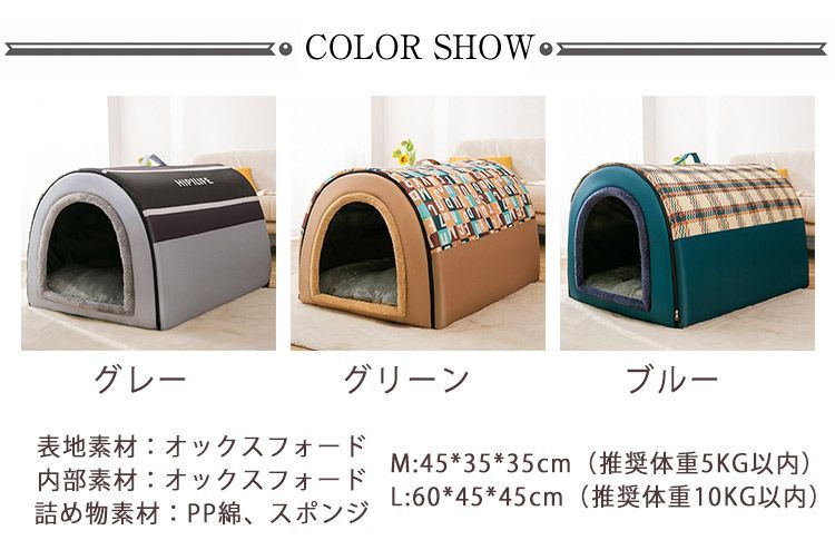 サイズについての説明:M:45*35*35cm(推奨体重5KG以内) L:60*45*45cm(推奨体重10KG以内)
