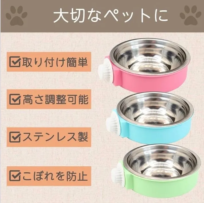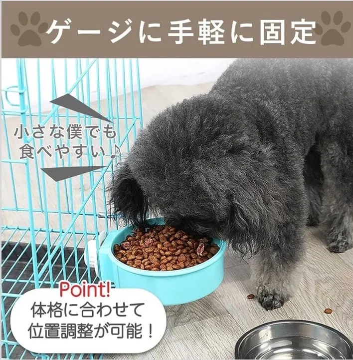 【大切な家族に】普段やお出掛け中のペットの餌やりにお使いいただけるペットボウルになります。金網やゲージに手軽に固定でき、ペットの高さに合わせてボウルの固定できます。