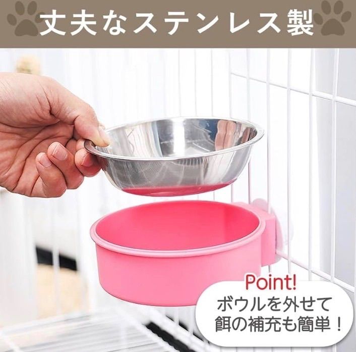 ペットボウル 食器 給餌器 えさ入れ フードボウル ケージ 犬 猫 うさぎ 小動物 固定 (ピンク, S)