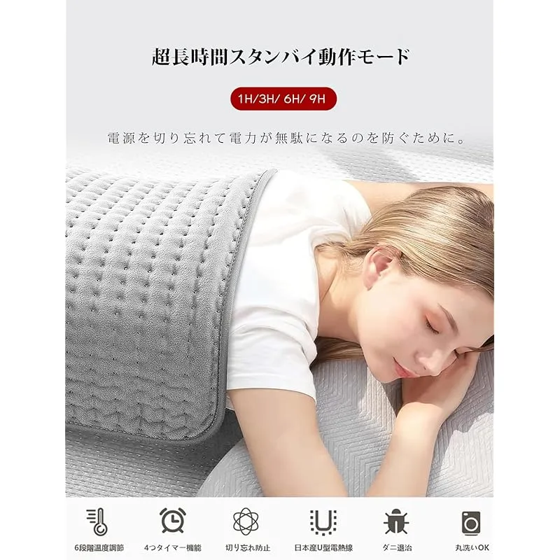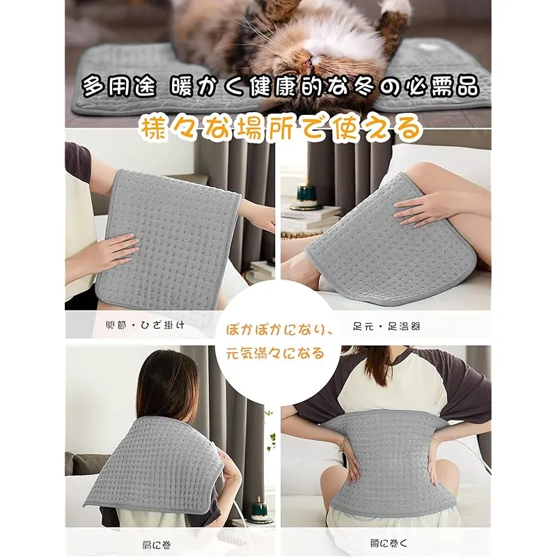 【商品概要】 [シャープな電気ホットマット] 柔らかい手触りの良いフランネルを使用しており快適な使い心地を体験できるのも魅力です。寒い冬を暖かく乗り越える防寒対策電気ホットマット。家族、友人、師長、リーダーなどへの贈り物もピッタリです。 [6段階温度調整できる敷き電気マット] 温度段階を30℃~65℃の6段階に調節できます。温度が65°以上になった場合、長時間で使用すると、皮膚乾燥や低温やけどなどの恐れがあるので気を付けてください。 [過熱防止、過電圧保護] 該当電気ホットマットに過熱防止、過電圧保護の機能が内蔵しており、温度制御保護システムにより電圧が異常の場合は自動的に電源が切れ、安全性を高めます。 [タイマー機能付きの一人用ミニ カーペット] コントロールには「タイマー」の文字があります。電源OFFのタイミングは、好みにより、1時間/3時間/6時間/9時間で設定可能です。 [すばやくヒートアップ] 電源が入ると、2分が経たないうちにほんのり暖かい。暫くすると、かなり熱くなります。丸ごとで洗濯機で洗濯が可能です。ホットマットをお手入れする際は、必ず電源を抜いてください。
