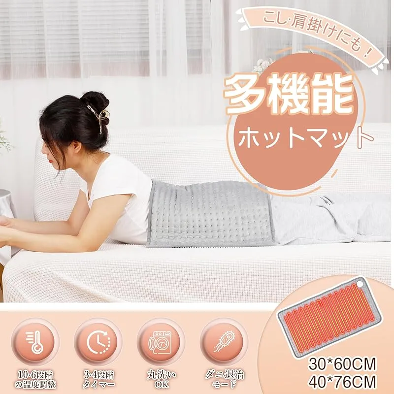 【10段階温度調節&省エネ】ホットマットは30-60℃(±3℃)の10段階細かく温度モードを切り替え、お好みに合わせてホットマットの温度を調整できます。低電力設計で、エアコンより省エネで、電気代が超安いです。低電力設計で、エアコンと比べて、省エネで、電気代が超安いです。