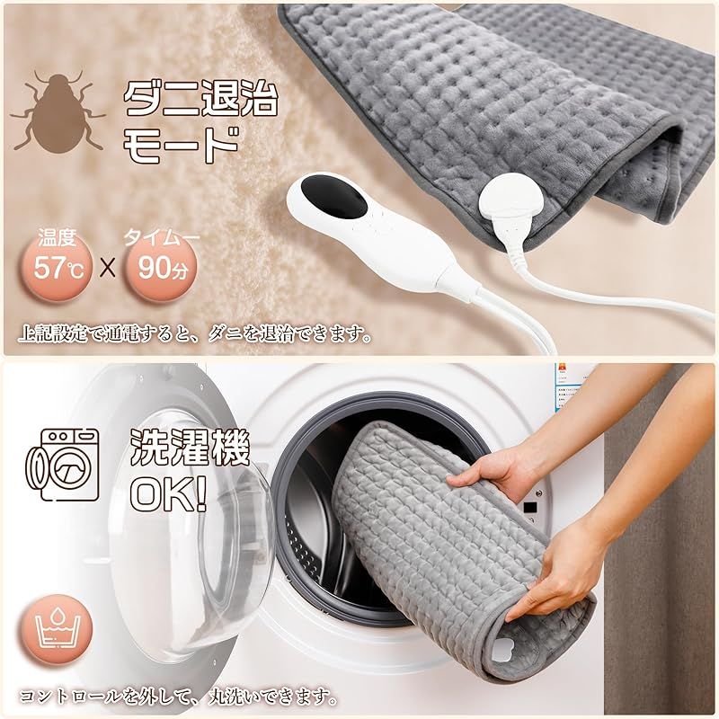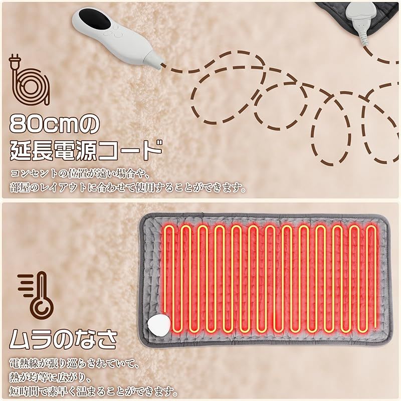 【ふかふかな触り心地・洗濯機丸洗いOK&省スペースで収納可能】この電気ホットマットは手洗い、洗濯機で丸洗いもOKです。丸洗い前に、コネクターを取り外す必要があります。そして、薄くて軽くて、柔軟性に優れます。,折りたたみ可能で、曲げたりしても損傷しません。また、スペースを取らず、収納と携帯に便利ですので、おうちはともかく、オフィスや旅行でも活躍します。