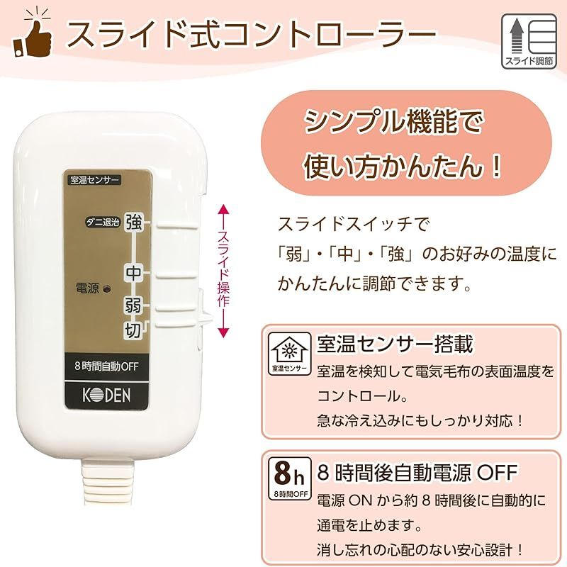 【本体丸洗いOK】本製品は、コントローラーを外すことで洗濯機で丸洗いが可能です。ダニ退治機能も搭載されておりますので、ダニ退治後に丸洗いすることで清潔にご使用になれます。※洗濯の際は、洗濯ネットをご使用ください。※ドラム型洗濯機や乾燥機は使用不可。