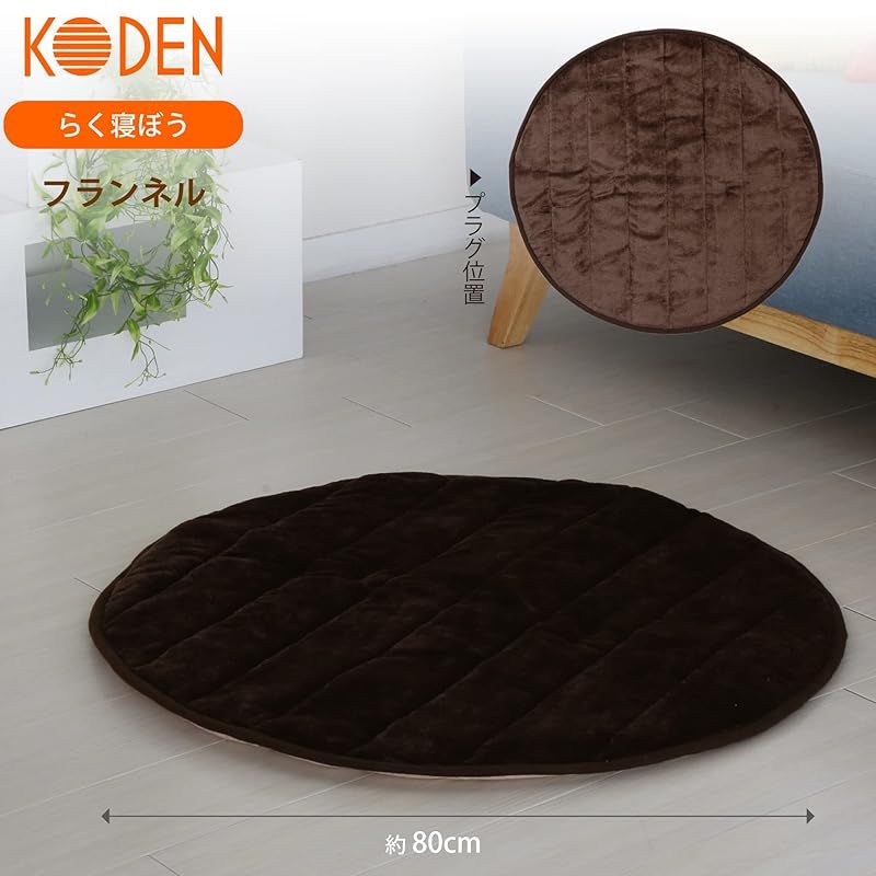 広電(KODEN) ホットマット らく寝ぼう 80×80cm 円形 ブラウン フランネル 洗える ダニ退治 8hOFF 室温センサー付 スライド温度調節 CWR080G-B 0