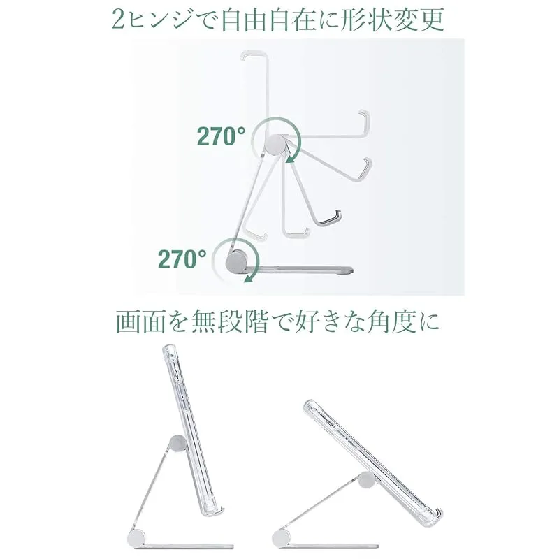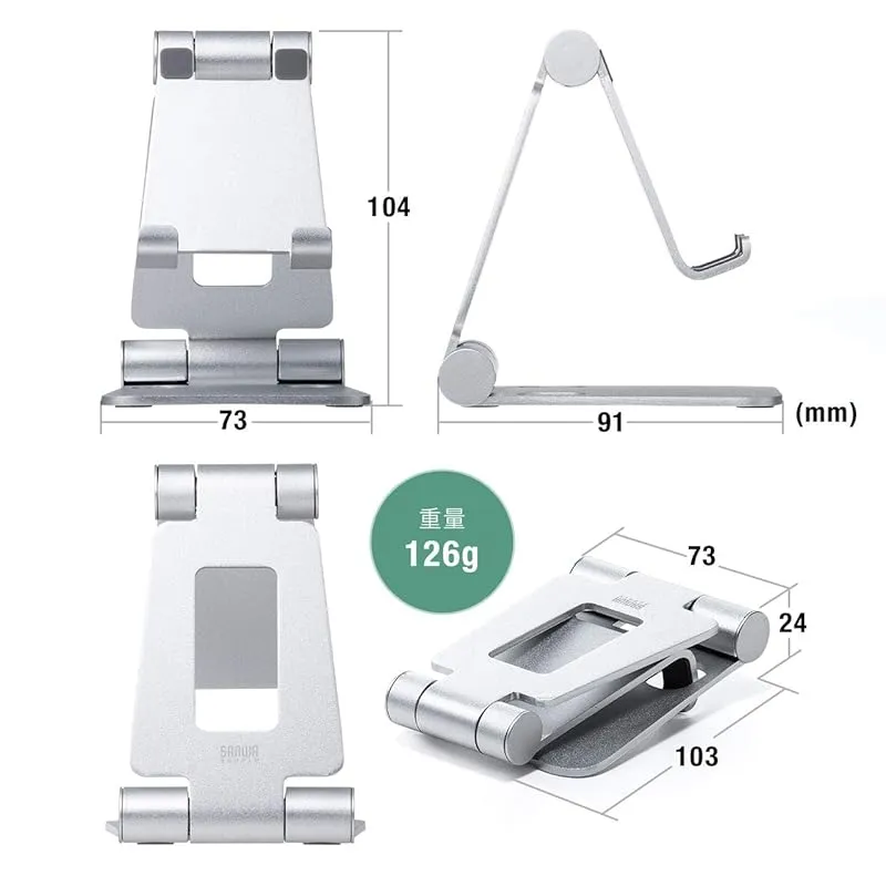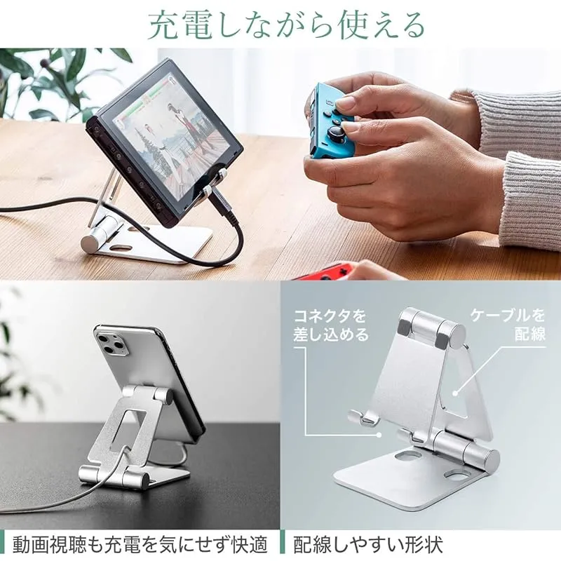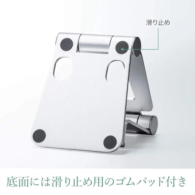 サンワダイレクト スマホスタンド 折りたたみ アルミ 無段階角度調整 iPhone Nintendo Switch 対応 シルバー 200-STN036 0