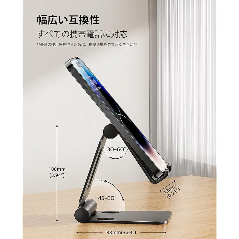 【商品概要】 ユニバーサルな互換性: この携帯電話スタンドは、アイフォン スマフォ アンドロイド iPhone 16 15 14 plus pro promax 13 mini 12 11 プロ マックス se Huawei Xperia android に対応、Switch、iPad mini、Samsung Galaxy S10 /S10+/S9 /S9+/S8 /S8 +、Samsung Tab、Google Nexus、Kindleなどのすべての4-8インチのスマートフォンタブレットと電子書籍リーダーに対応しています。 調節可能&ポータブル: 携帯電話ホルダークレードルは完全に折りたたまれます。 適切な位置に簡単に適応できます。 手を解放するので、ビデオ鑑賞、ゲーム、電話、レシピ鑑賞、Facetimeの使用に最適なデスクコンパニオンです。 頑丈で保護: デスクフォンスタンドは高品質のプレミアムアルミニウム製です。 しっかり固定し、安定して携帯電話をサポートし、ぐらつく心配がありません。 ラバーパッドが携帯電話を傷や滑りから守ります。 アドバイス: デバイス(4インチ-6インチ)を横向きまたは縦向きモードに設定し、デバイス (6インチ-10インチ) を横向きモードに設定して、より優れた安定性を実現してください。 ケース対応: スマホスタンドのフック幅は18mmなので、ケースを取り外す必要がなく、HEAVY CASEをつけたままスマホを収納できる長さです。 ガジェットの厚さが18mm (0.71インチ)以下であることを確認してください。 注意事項: デバイス(4"-6")を横向きまたは縦向きにセットし、デバイス(6"-10")を横向きにセットしてください。