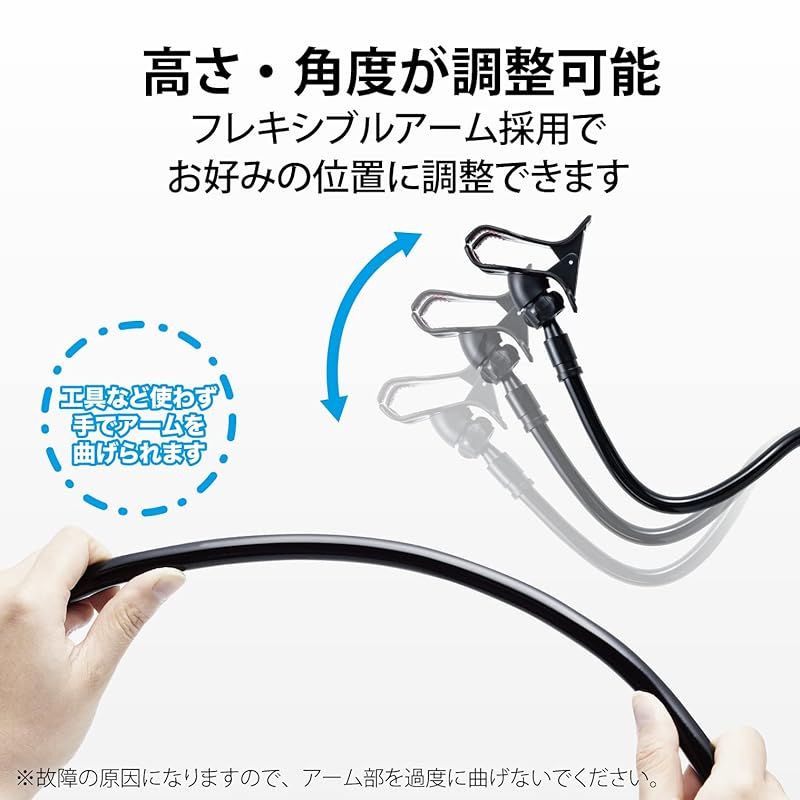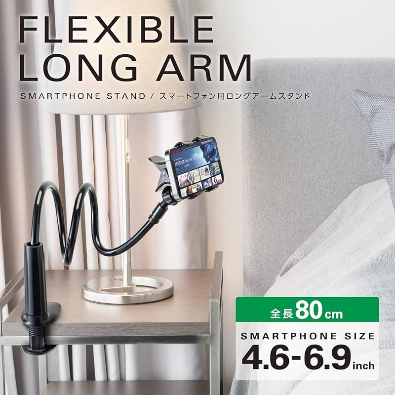 エレコム スマホ用スタンド アーム型 全長80cm 自由に曲がる(4.6~6.9インチスマホ対応) ブラック PWDSLARM80BK 0