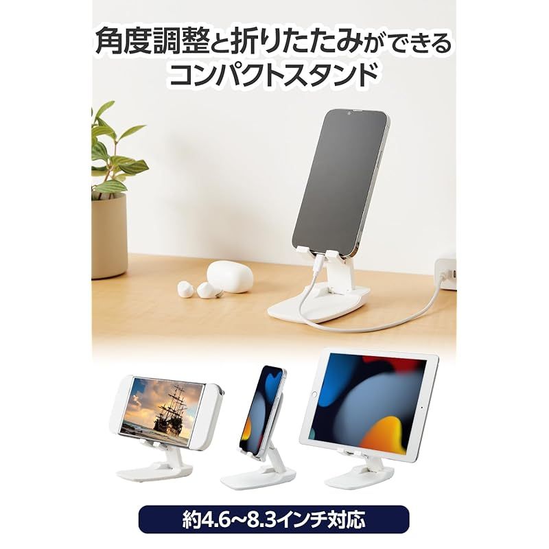 エレコム スマホスタンド 折り畳み 無段階調整 滑り止め 安定 軽量 持ち運び 4.6~8.3インチ対応 ホワイト PWDSCHAMWH 0