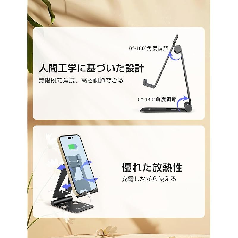 アオビホ(Aoviho) スマホスタンド ホルダー 折り畳み 卓上スタンド タブレット携帯兼用 旅行用 角度調整 大型 両手解放smartphone stand 充電スタンド 散熱 ipad全機種 iPhone15 14 13 Pro Max Mini 0