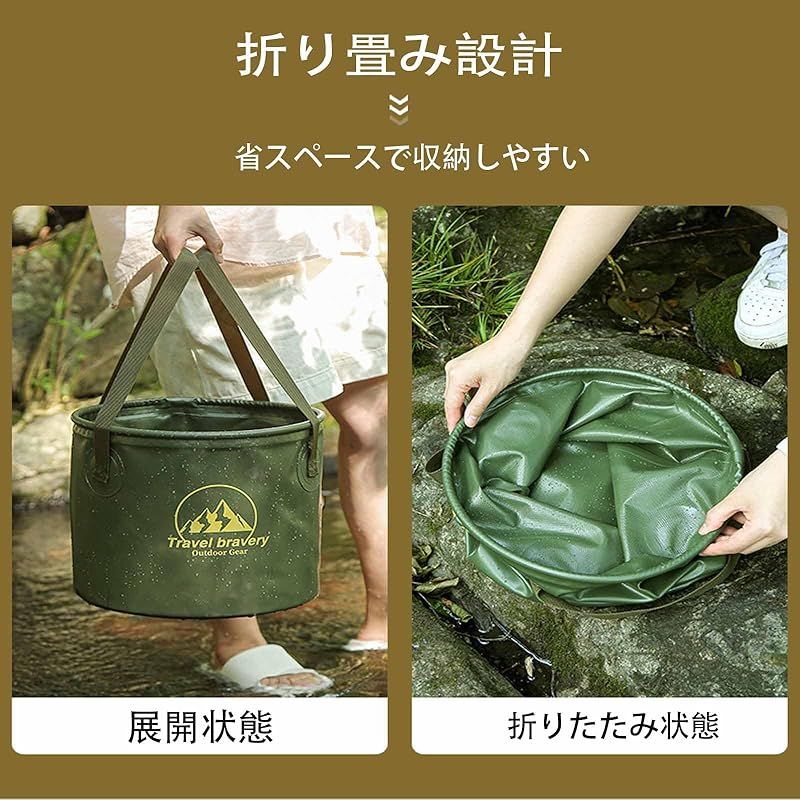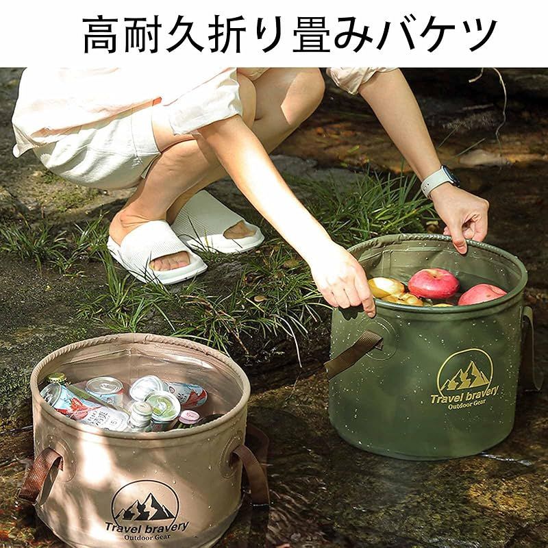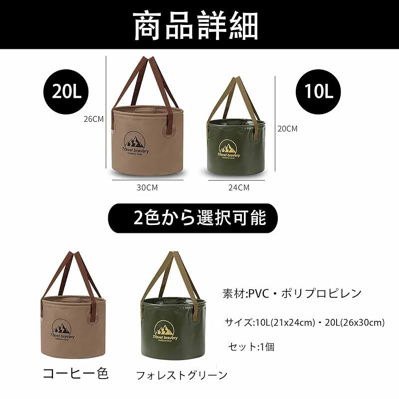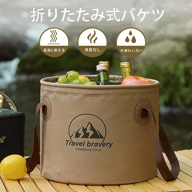 【製品内容】アウトドアキャンプ折りたたみバケツグリーン10 L コーヒー色 1個。