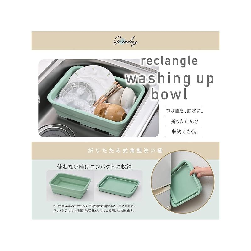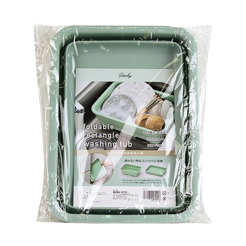 カクセー 洗い桶 折りたたみ式 角型 縦27.3cm×37cm×11.9cm グリーン Grinday -グリンディ- NB-23 0