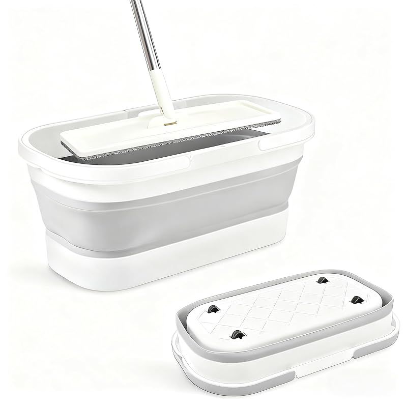【ホイール付き・清掃効率の向上】:この折りたたみモップバケツのユニークな点は、底部に装備されたホイールのデザインです。これにより、清掃中にバケツを一つの部屋から別の部屋へ簡単に移動でき、力を使って運ぶ必要がありません。