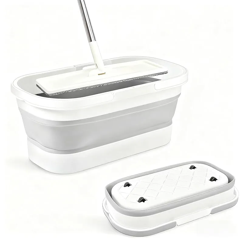 RULAYMAN 折りたたみ バケツ モップバケツ 洗い桶 12/15L 大容量 ホイール 取っ手付き 生活用品 掃除 洗濯 アウトドア 車載バケツ 多機能 収納便利 (12L、ライトグレー) 0