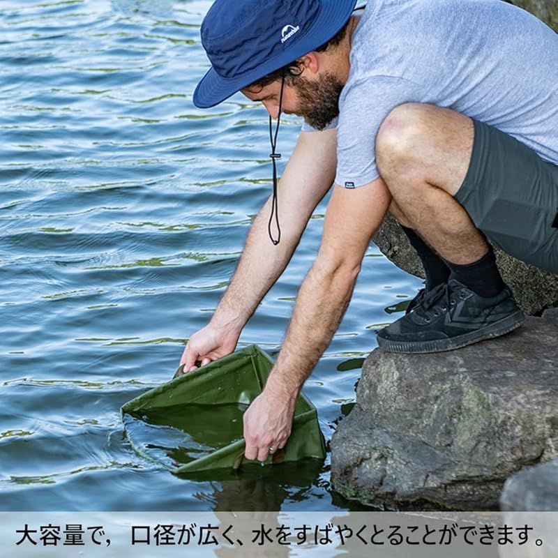 【材質について】耐久性に秀でた PVC シート生地を採用しており、アウトドア やキャンプに最適です。水漏れがなく、高い耐摩耗性を備えているため、長期間使用することができます。また、人体と環境の安全を重視して BPA フリーとなっており、飲み水を汲み取る用途にも使用できます。