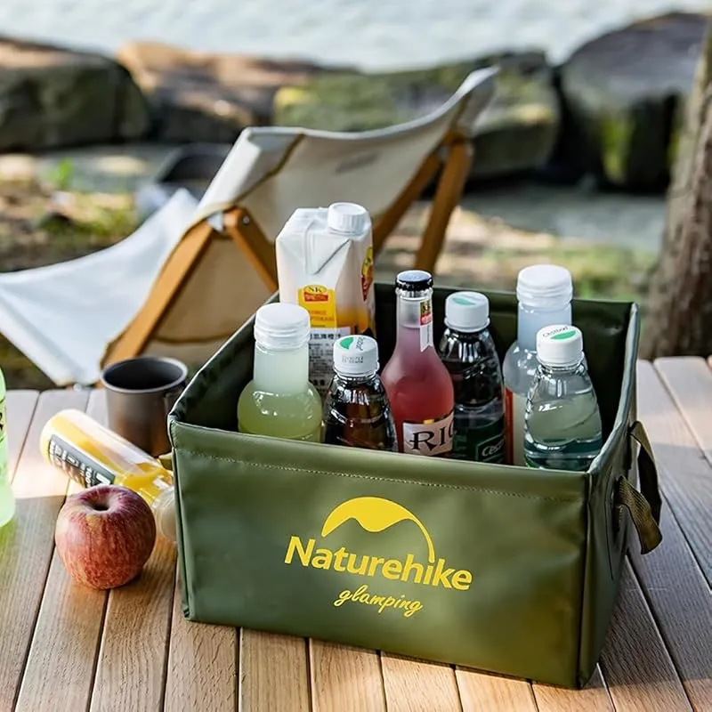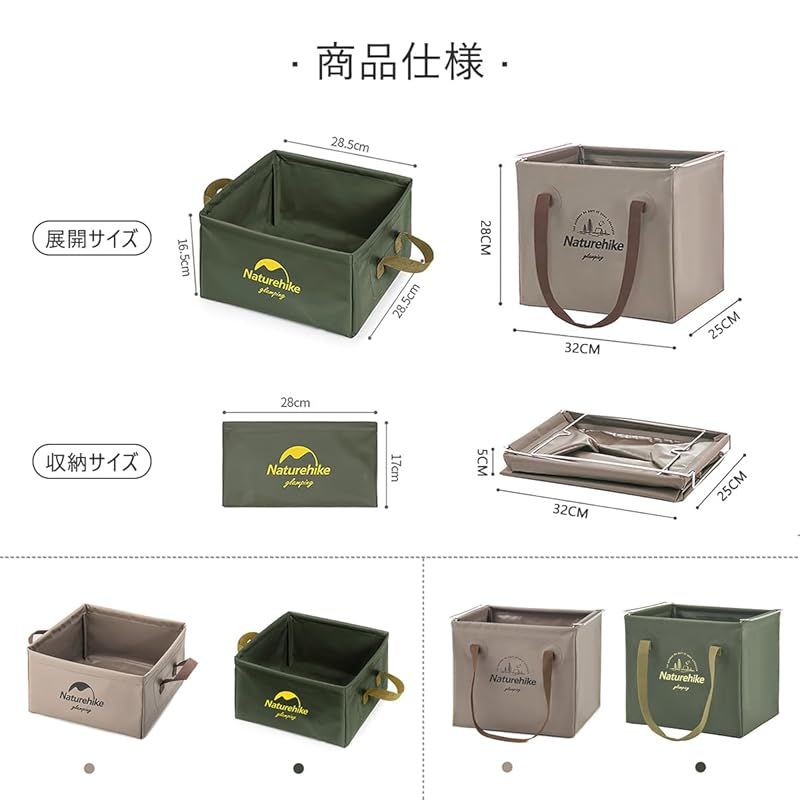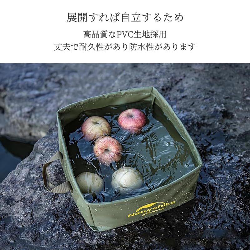 Naturehike 布質のバケツ アウトドア用折りたたみ式のシンクで 四角い形で持ち運び便利な折り畳み式で 洗面器 水の入れ物 小物入れ機能を兼ね(13L, 緑, 13リットル容量) 0
