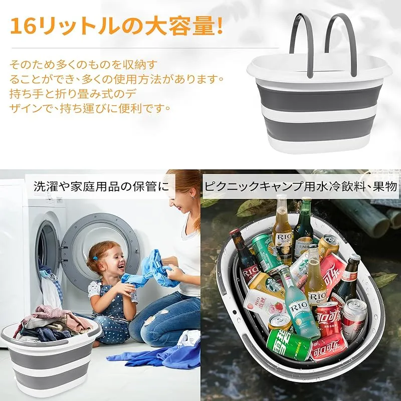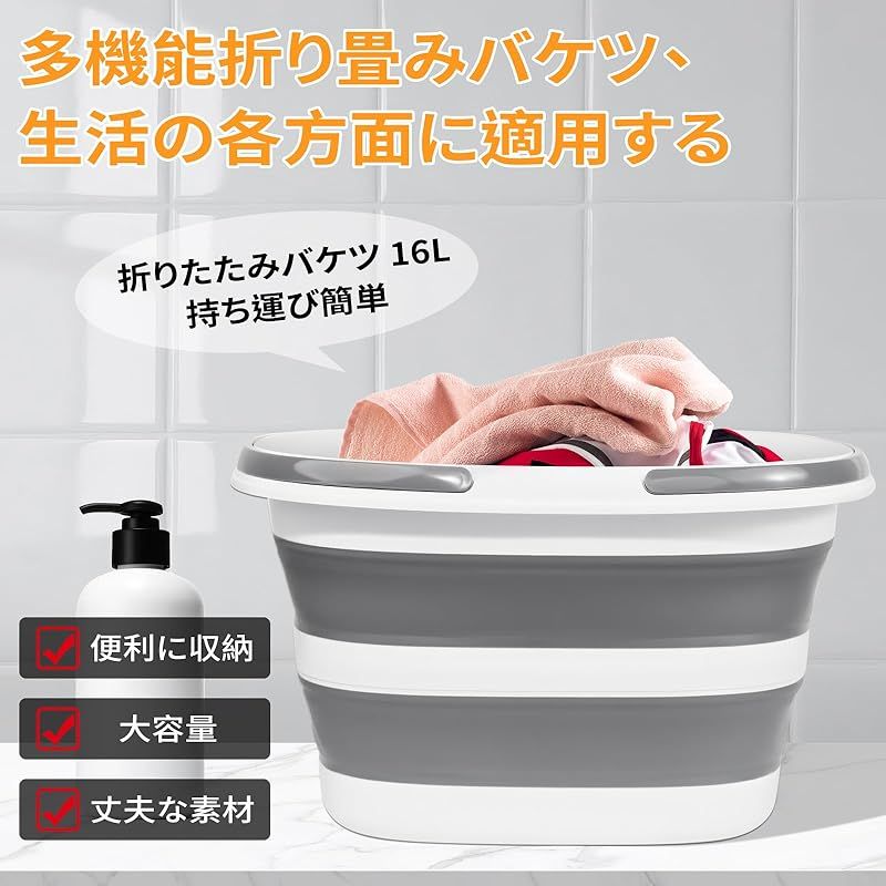 Vevesoas 折りたたみバケツ 洗い桶 16L 大容量 折りたたみ式 洗いおけ 収納便利 多機能バケツ 使用可能洗車、釣り用、園芸、掃除、足浴、猫犬風呂、釣り用バケツ、靴洗い 持ち運び 内外に適用 1