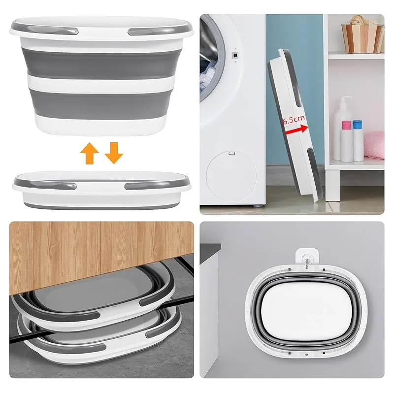 【折りたたみ収納、吊り下げ収納】普通のバケツと違って、このバケツは折りたためるデザインになっています。スリット収納が可能なコンパクトデザインで、折りたたむと厚さはわずか6.5cm。使用後は折り畳んでシンクの下や隙間に置くことができ、壁掛け用の吊り穴が付いている、収納スペースを節約できます。