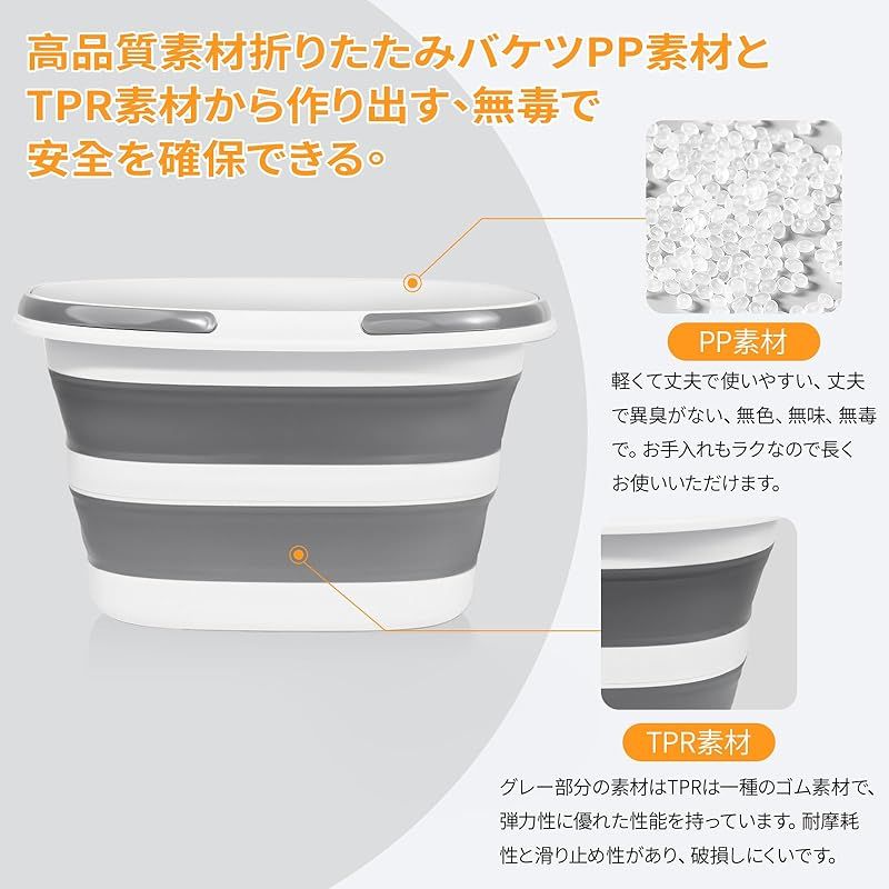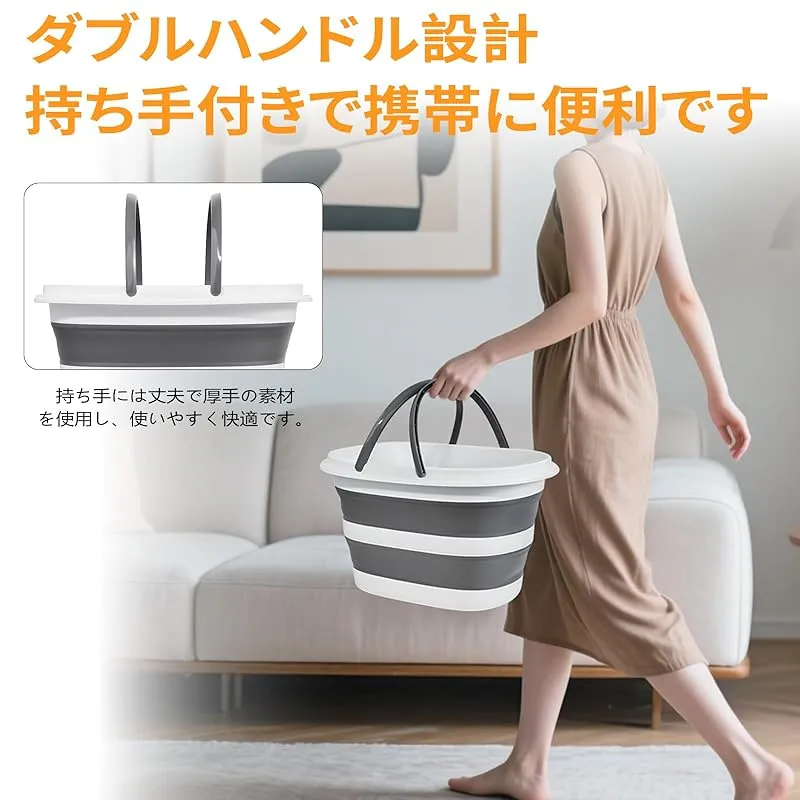 【持ち手付きで持ち運びに便利】この折りたたみバケツはハンドル付き、持ち運びやすいデザインです。女性の携帯に適しています。人間工学に基づいたデザインで、ハンドルが長く、接触面積が広く、手への圧力を低減します。水や荷物を持っていっても、一人で簡単に運べます、日常の清掃作業も楽々対応。