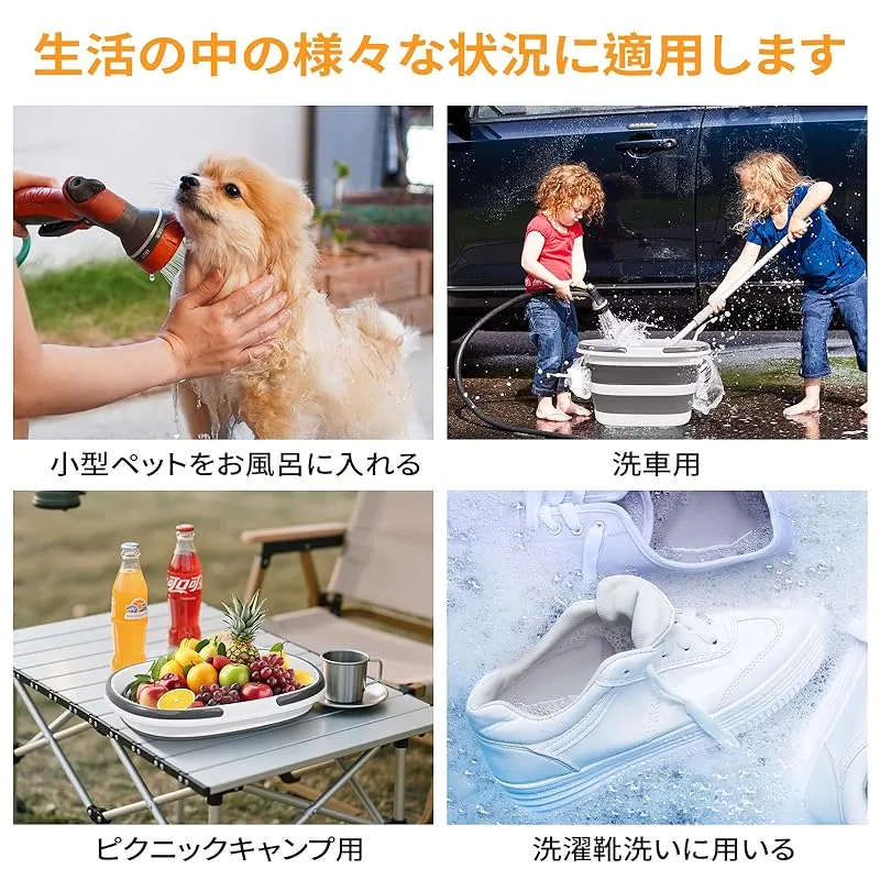 【多機能性、多用途折りたたみ バケツ】こちらの折り畳みバケツは様々なシーンに対応できるように工夫されています!各種の場合に適用して釣り、洗濯、掃除、洗車、園芸、防災、家庭収納、戸外収納、車内収納の理想的な選択である。また、浸け桶として靴の甲や運動靴を洗ったり、犬や猫のお風呂桶としても使える便利な生活体験を提供します。