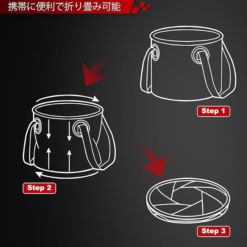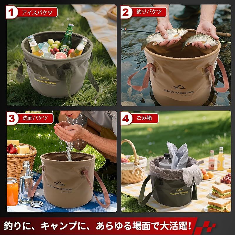 【商品概要】 折り畳み可能:バケツは折り畳み式設計を採用しており、通常のバケツ形態から一瞬で扁平な形状に折り畳め、スペースを取りません。たためるバケツはアウトドアでの携帯に便利で負担にならず、バケツ 折り畳みが外出をより快適にします。 大容量:バケツ 折り畳みは10L、20Lのサイズから選択可能で、折り畳んだ後はコンパクトながら、展開時の容量は十分です。 広範な用途:たためるバケツはアウトドアや日常生活に適しているだけでなく、釣り、洗車、ペットの浴槽としても使用できます。 高品質な素材:折りたたみ バケツは防水PVC加工を採用しており、底部の二重縫製と密封縫製により、この多機能バケツはより耐久性があり、漏れ防止性に優れています。水を満たした後でもバケツは安定して直立し、転倒せず、水が漏れることはありません。 簡単お手入れ:PVC素材により、バケツ 折り畳みの表面は簡単に清掃でき、早く乾きます。逆さリングデザインにより折り畳みバケツは素早く乾燥し、釣りバケツや洗車バケツとして最適です。