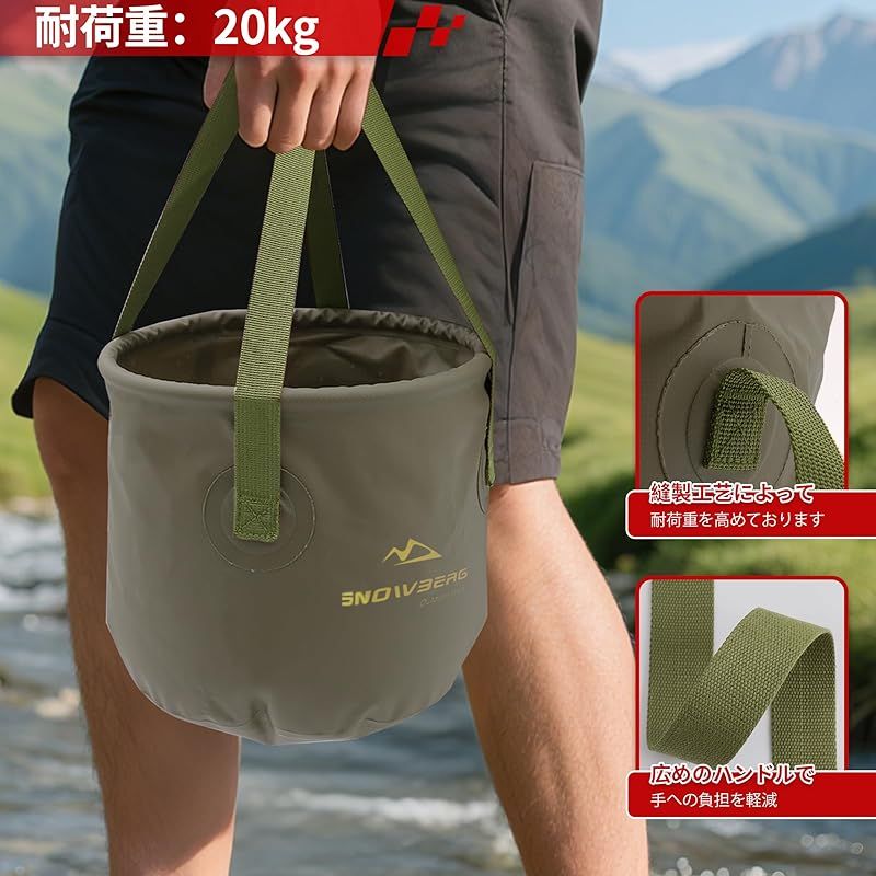 【商品説明】 バケツは折り畳み式設計を採用しており、通常のバケツ形態から一瞬で扁平な形状に折り畳め、スペースを取りません。たためるバケツはアウトドアでの携帯に便利で負担にならず、バケツ 折り畳みが外出をより快適にします。 バケツ 折り畳みは10L、20Lのサイズから選択可能で、折り畳んだ後はコンパクトながら、展開時の容量は十分です。 たためるバケツはアウトドアや日常生活に適しているだけでなく、釣り、洗車、ペットの浴槽としても使用できます。 折りたたみ バケツは防水PVC加工を採用しており、底部の二重縫製と密封縫製により、この多機能バケツはより耐久性があり、漏れ防止性に優れています。水を満たした後でもバケツは安定して直立し、転倒せず、水が漏れることはありません。 PVC素材により、バケツ 折り畳みの表面は簡単に清掃でき、早く乾きます。逆さリングデザインにより折り畳みバケツは素早く乾燥し、釣りバケツや洗車バケツとして最適です。