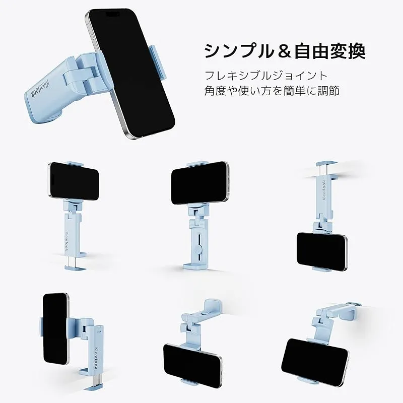 【折畳小型・360度回転】 卓上/クリップ式 スマフォンスタンド 安定性 コンパクト 携帯ホルダー 携帯便利 滑り止め加工 全てのPhoneに対応 キッチン/リビングルーム/オフィス/車載/ベット/旅行 用 製造元:Ariko 商品番号:KLTDST 色:ブルー