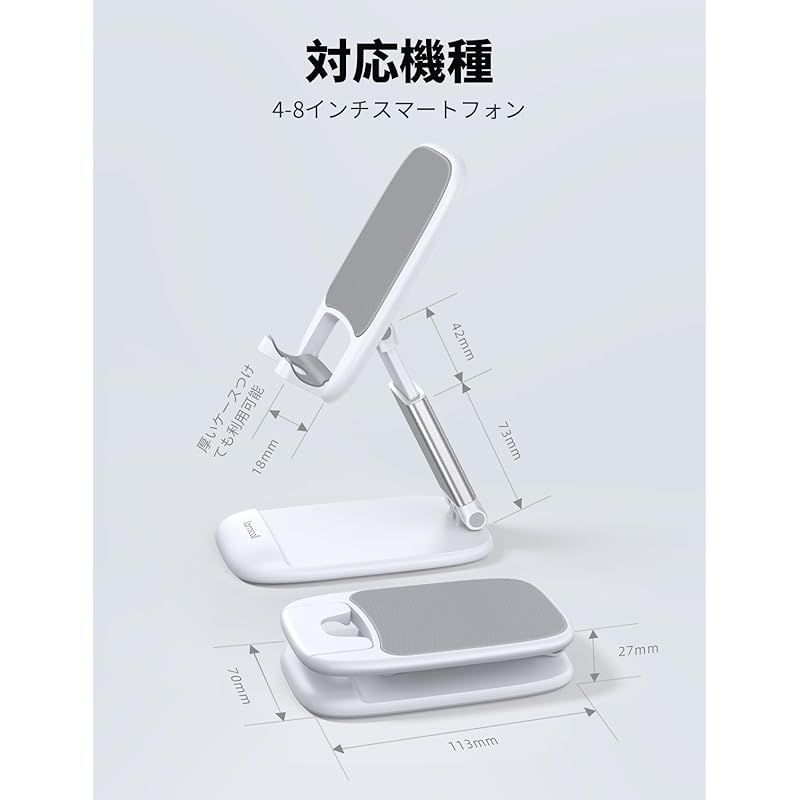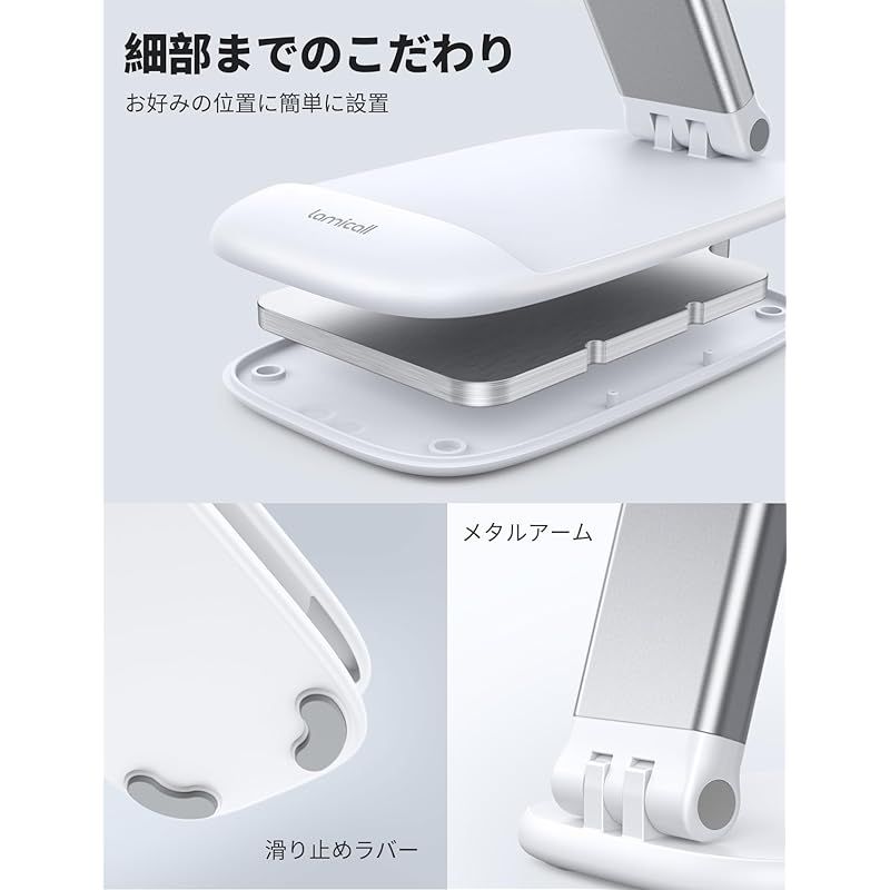 Lamicall 1個セット 折り畳み 高さ調整 スマホスタンド 伸縮 : 角度 折りたたみ 携帯 アイホン すまほ スマホ 立て 置き 台 卓上 机 つくえ デスク 縦 横 滑り止め コンパクト アイフォン スマフォ アンドロイド iPhone 17 A 1