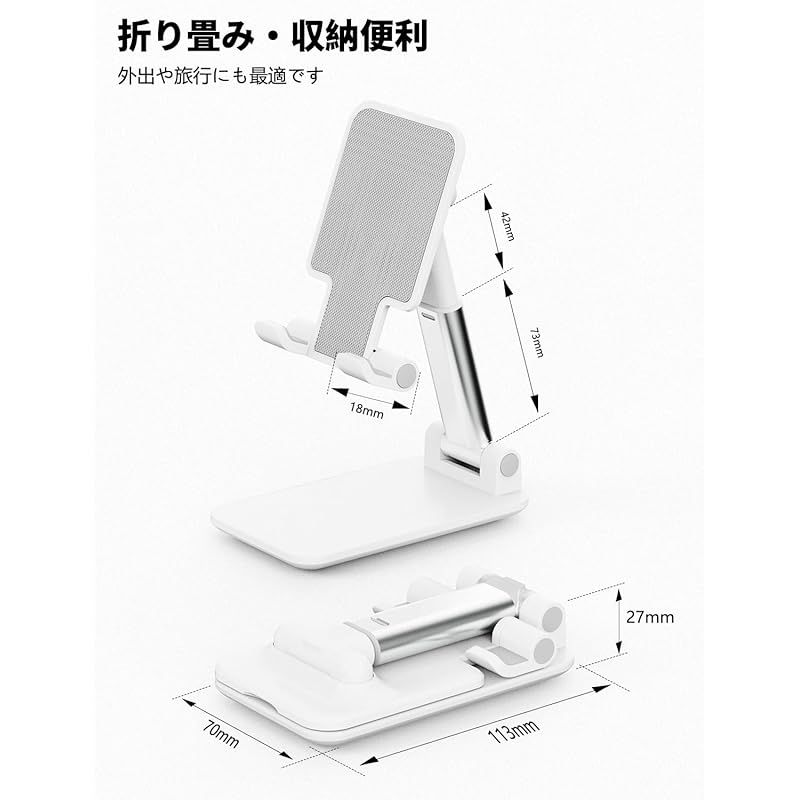 【商品説明】 [2枚入り] ZEEKK スマホスタンド 卓上 スタンド ホルダー 高度調整可能 スマホ スタンド おりたたみ 滑り止め 携帯 スタンド For iPhone/Kindle/Nintendo Switchなど(ホワイト)