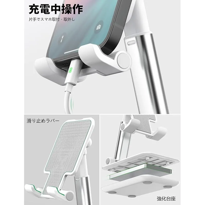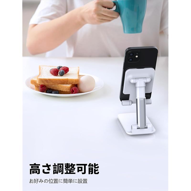 [ 2個セット] ZEEKK スマホスタンド 卓上 スタンド ホルダー 高度調整可能 スマホ スタンド おりたたみ 滑り止め 携帯 スタンド For iPhone/Kindle/Nintendo Switchなど(ホワイト) 0