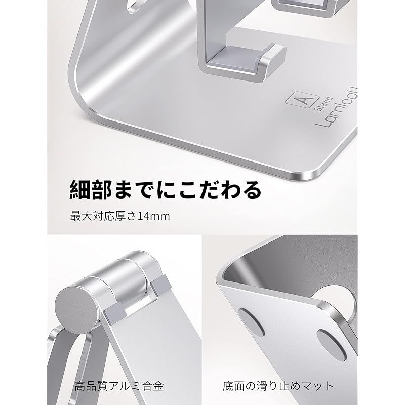 Lomicall スマホ スタンド アルミ 角度調整 : 卓上 携帯 けいたい 立て スマフォ すまほ アイフォン アンドロイド stand 置き 台 ホルダー 机 つくえ デスク 横 縦 iPhone 17 Air 16e 16 15 14 plus p 1