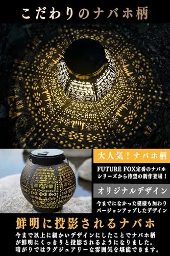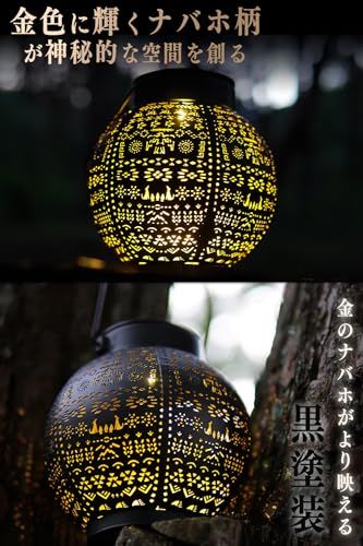 【金色に輝く】フューチャーフォックス キャンプ ライトは内側が金色になっていることで、映し出される灯りも金色になります。細部まで手の込んだナバホ柄模様が綺麗に投影されます。